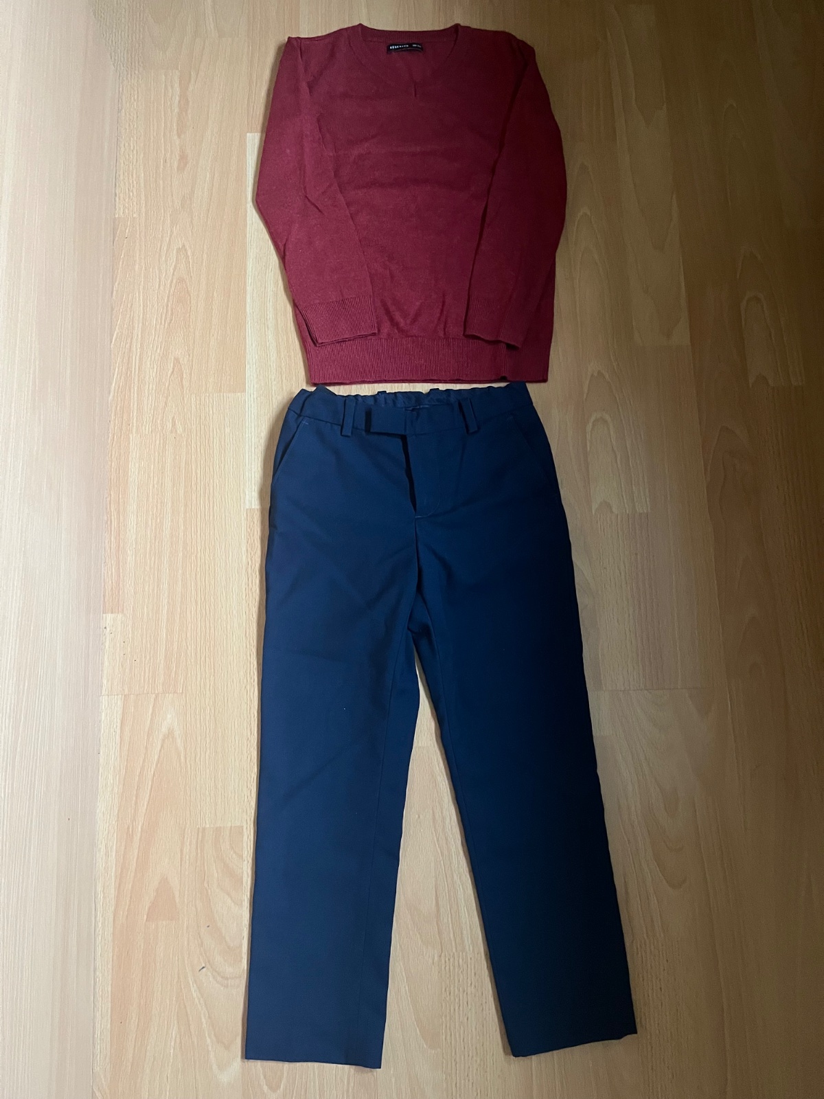 Elegantne nohavice h&m oblečené asi 2x príjemný materiál v páse si viete nastaviť je tam gumicka po oboch stranách na gombík,sveter reserved príjemný material jemnucky top stav.