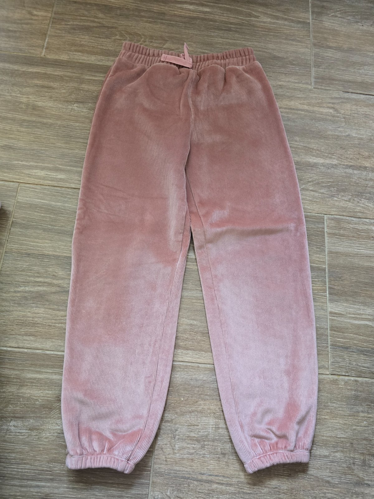 Teplejsie H&M teplaky uzsieho strihu, super sedia. Maju dve vrecka a funkcnu snurku v pase. Pouzivane, zmolcek z prania, ale inak bez dier a flakov.