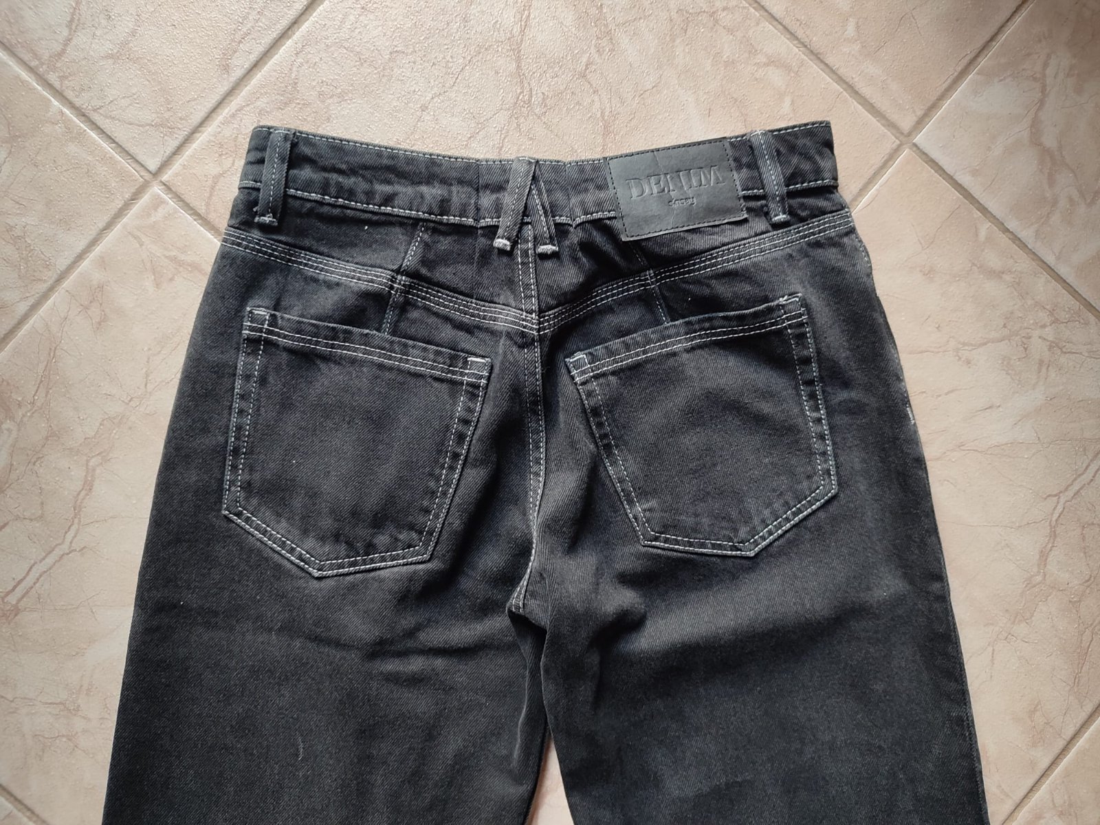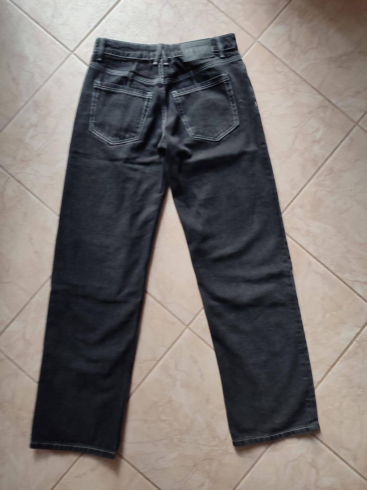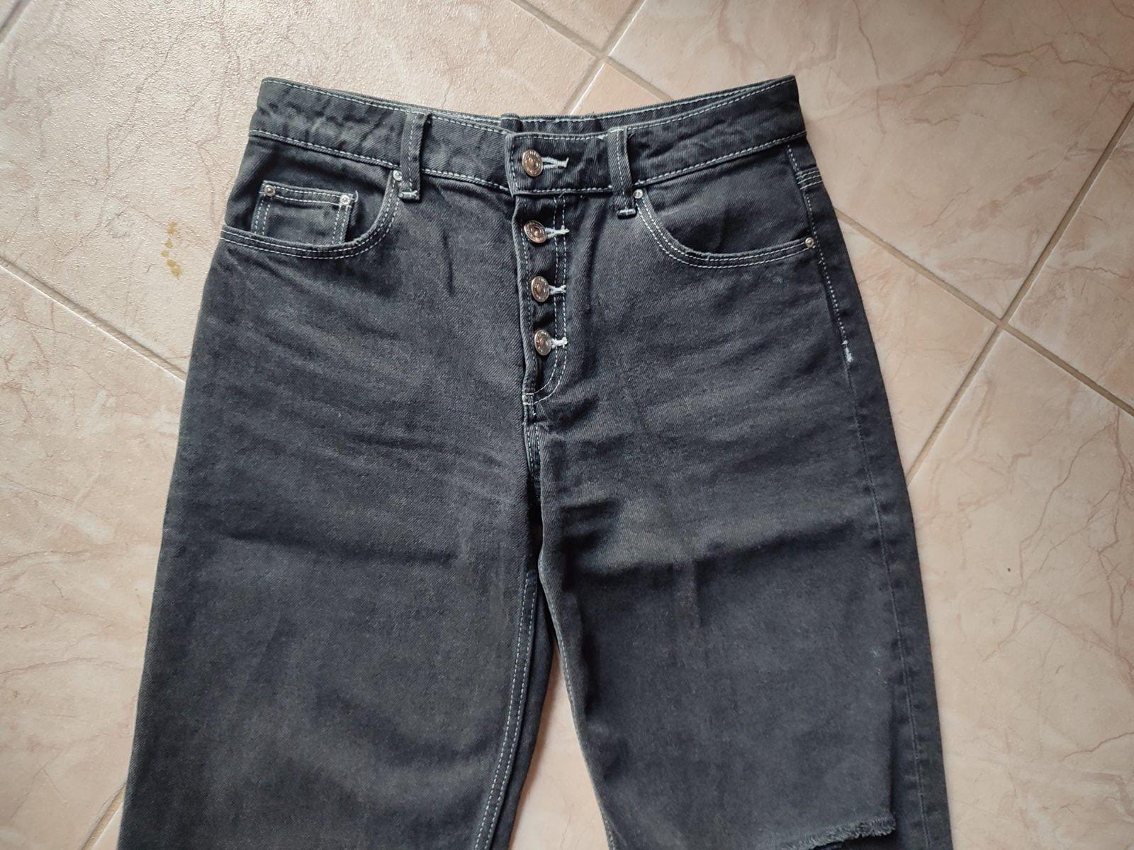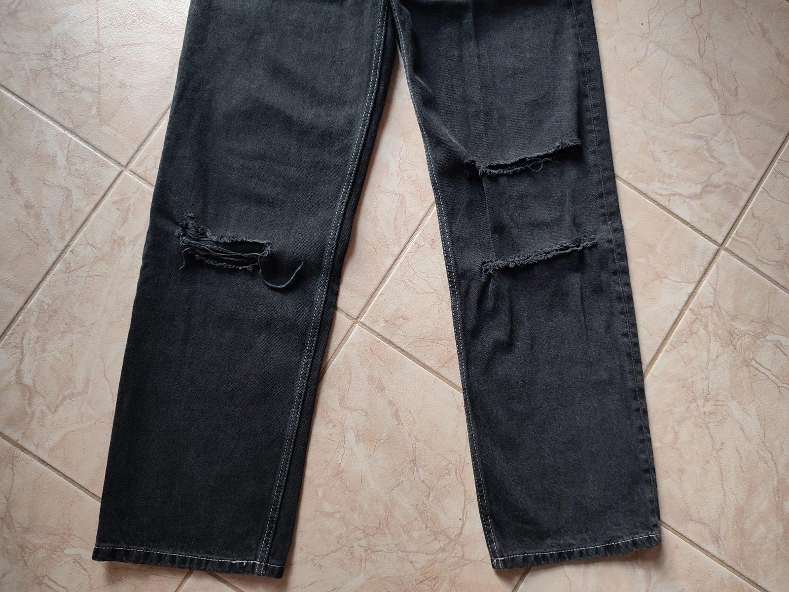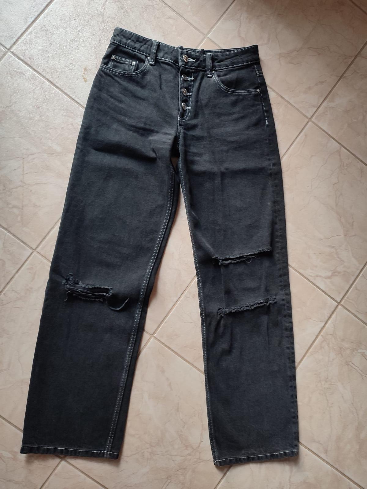 Čierne rifle v used efekte - s originál dierami na kolenách. Veľkosť je dámska 32, dcéra ich nosila, keď mala cca. 158 cm. Bez akýchkoľvek poškodení.