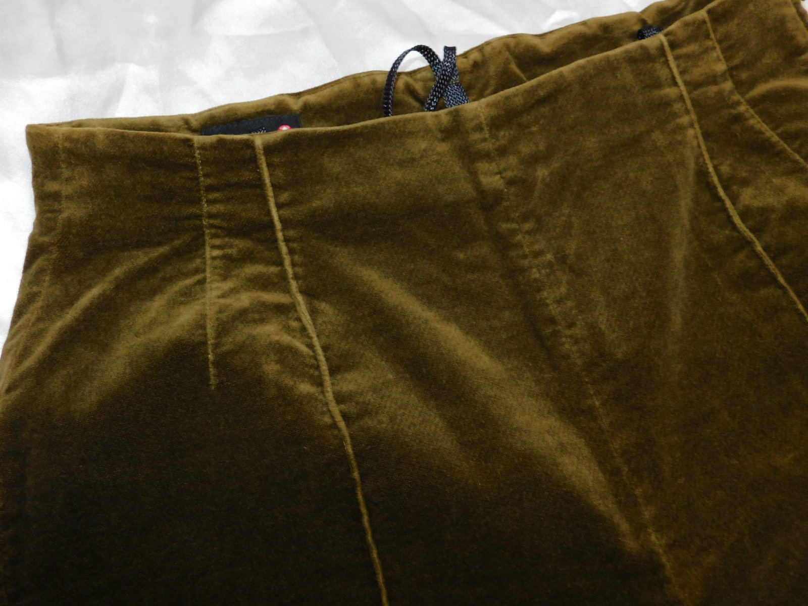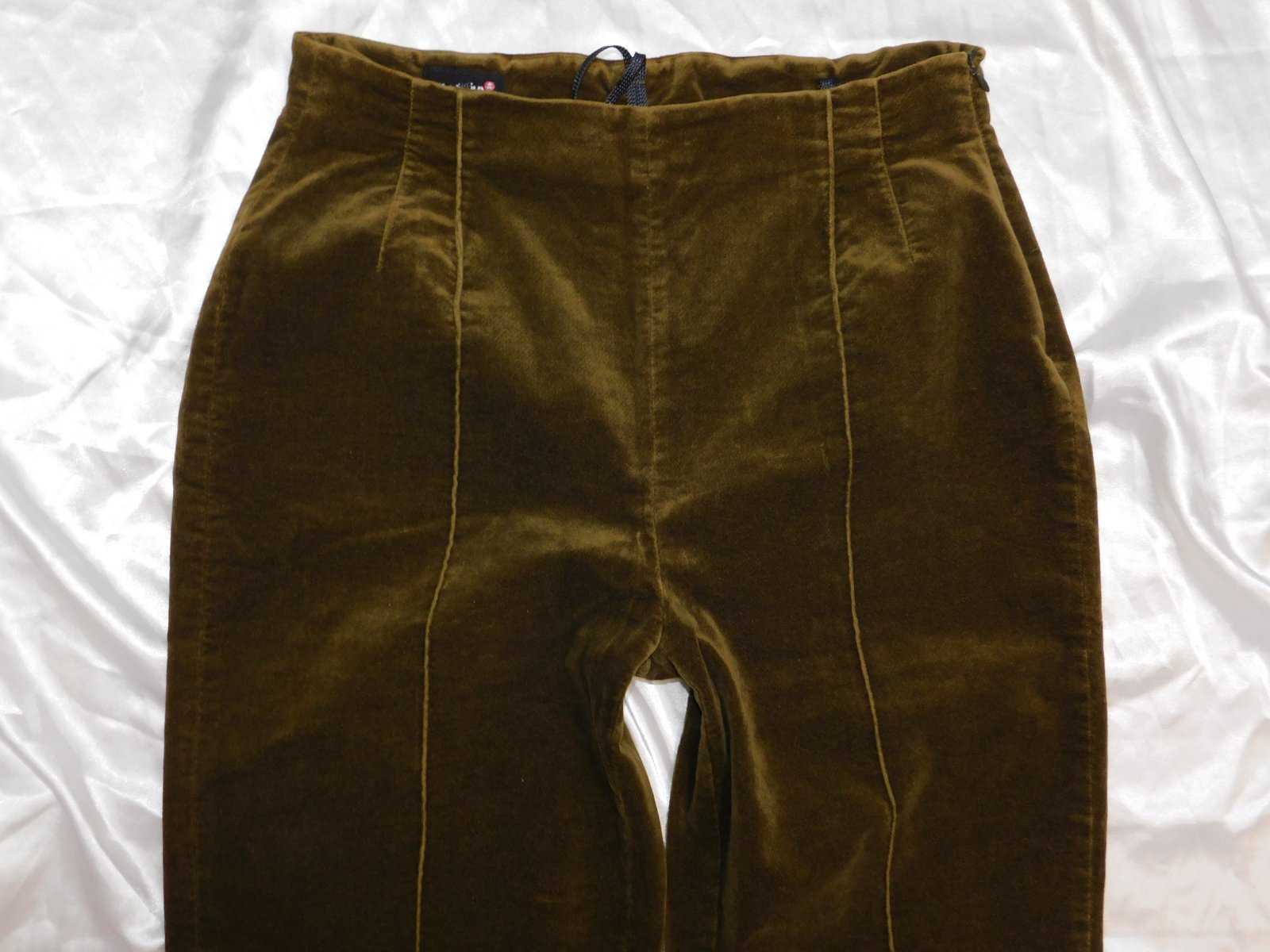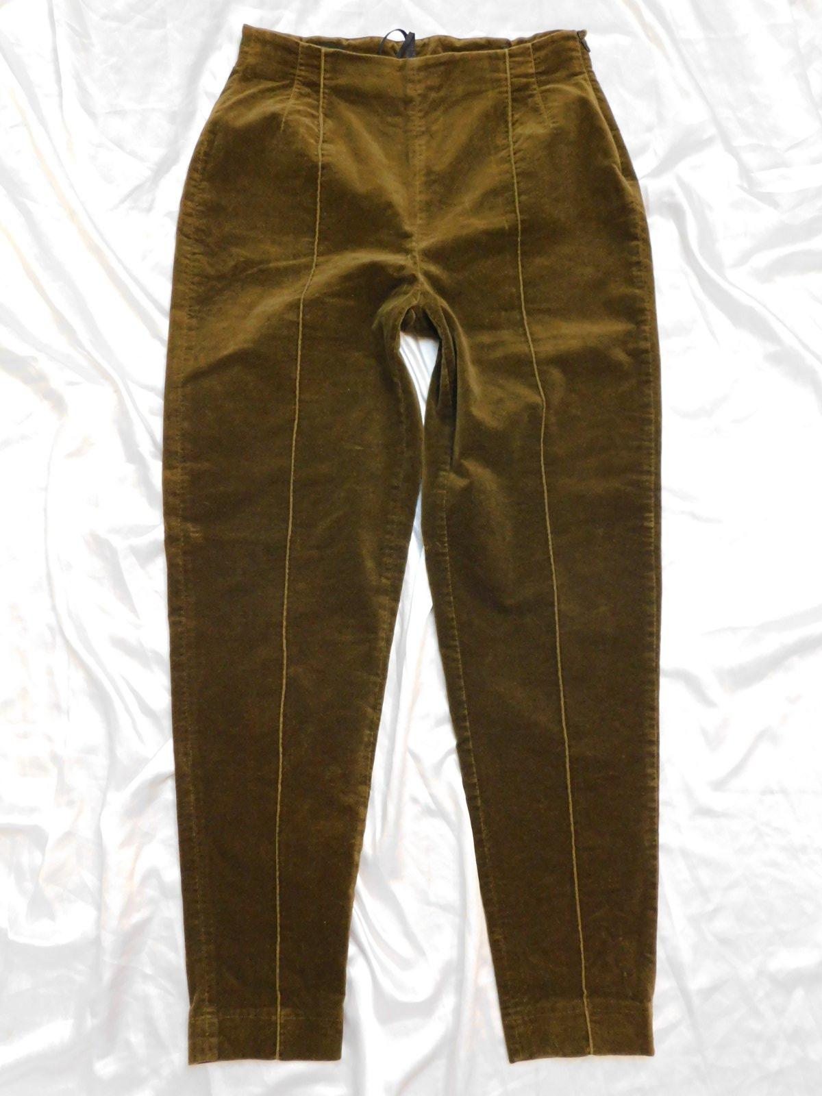 SCARABAUS Kvalitne zamatove nohavice khaki farby,prisposobive.98%bavlna,2%elastan. super stav. se36