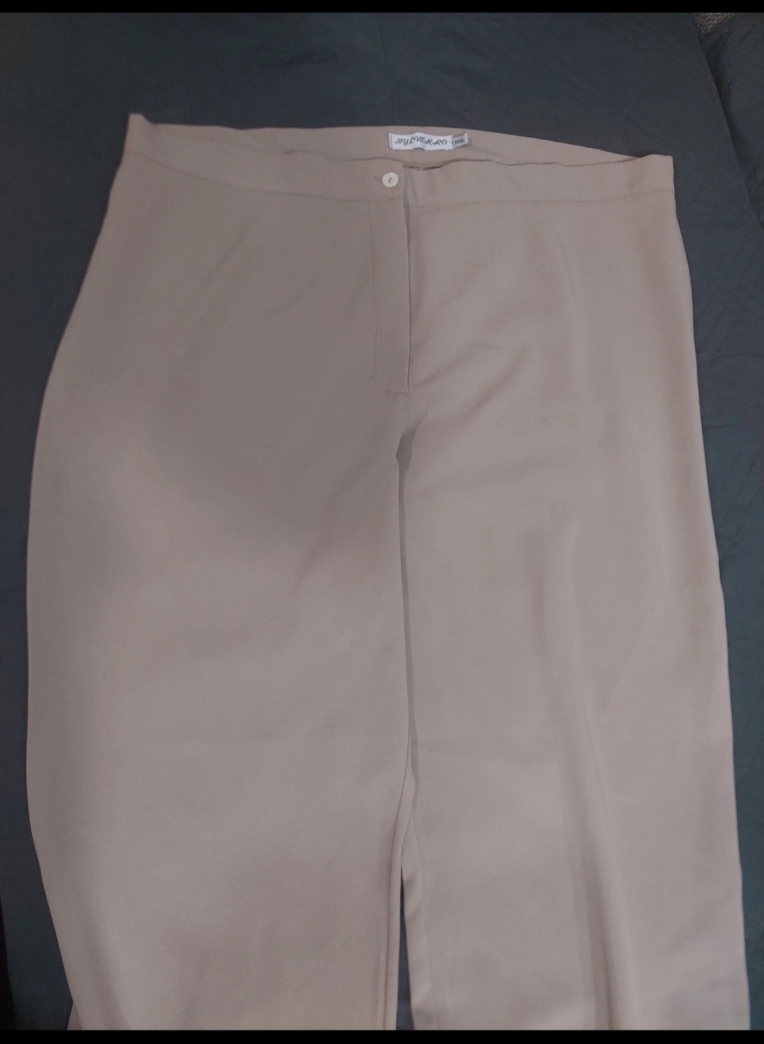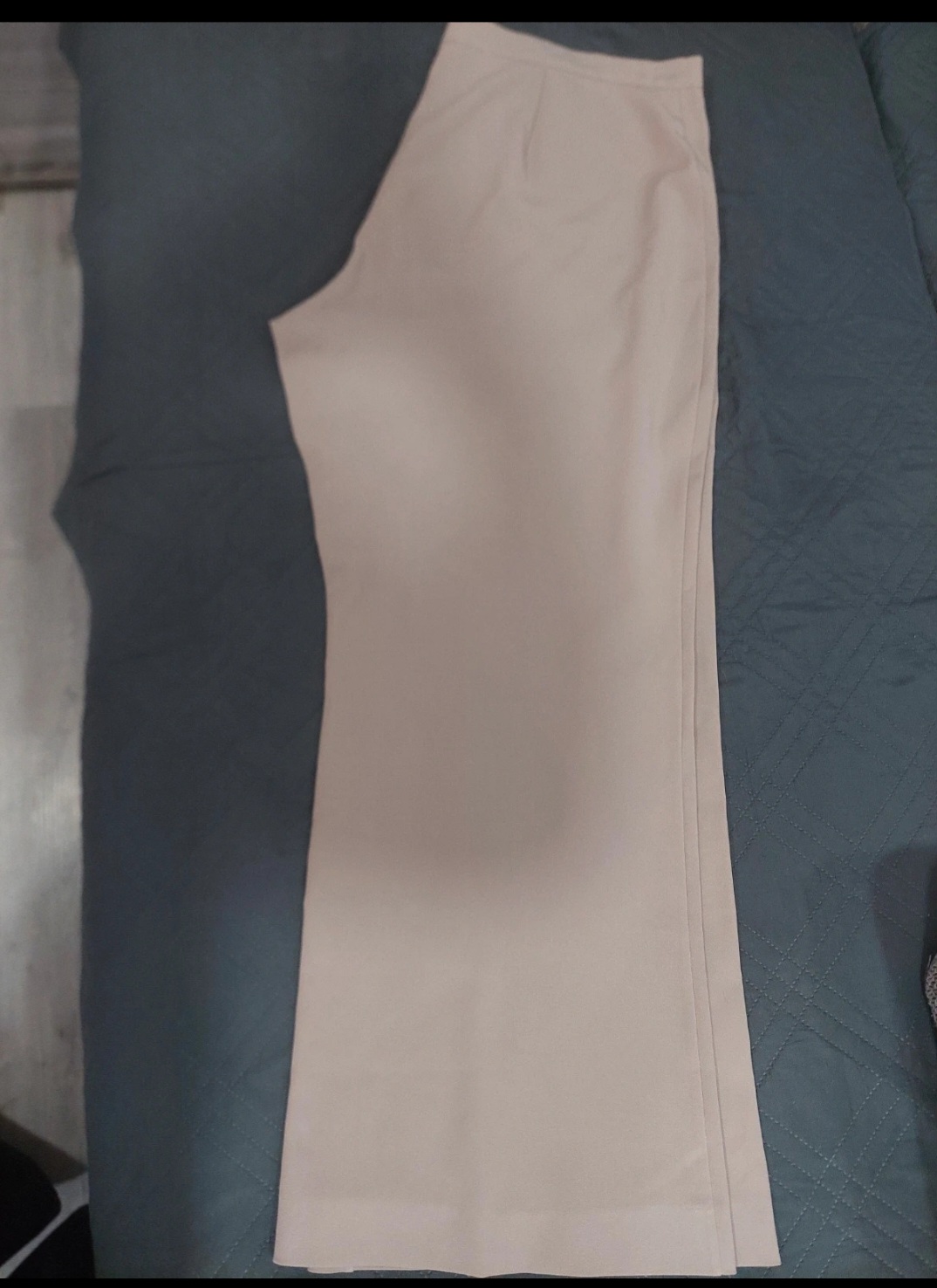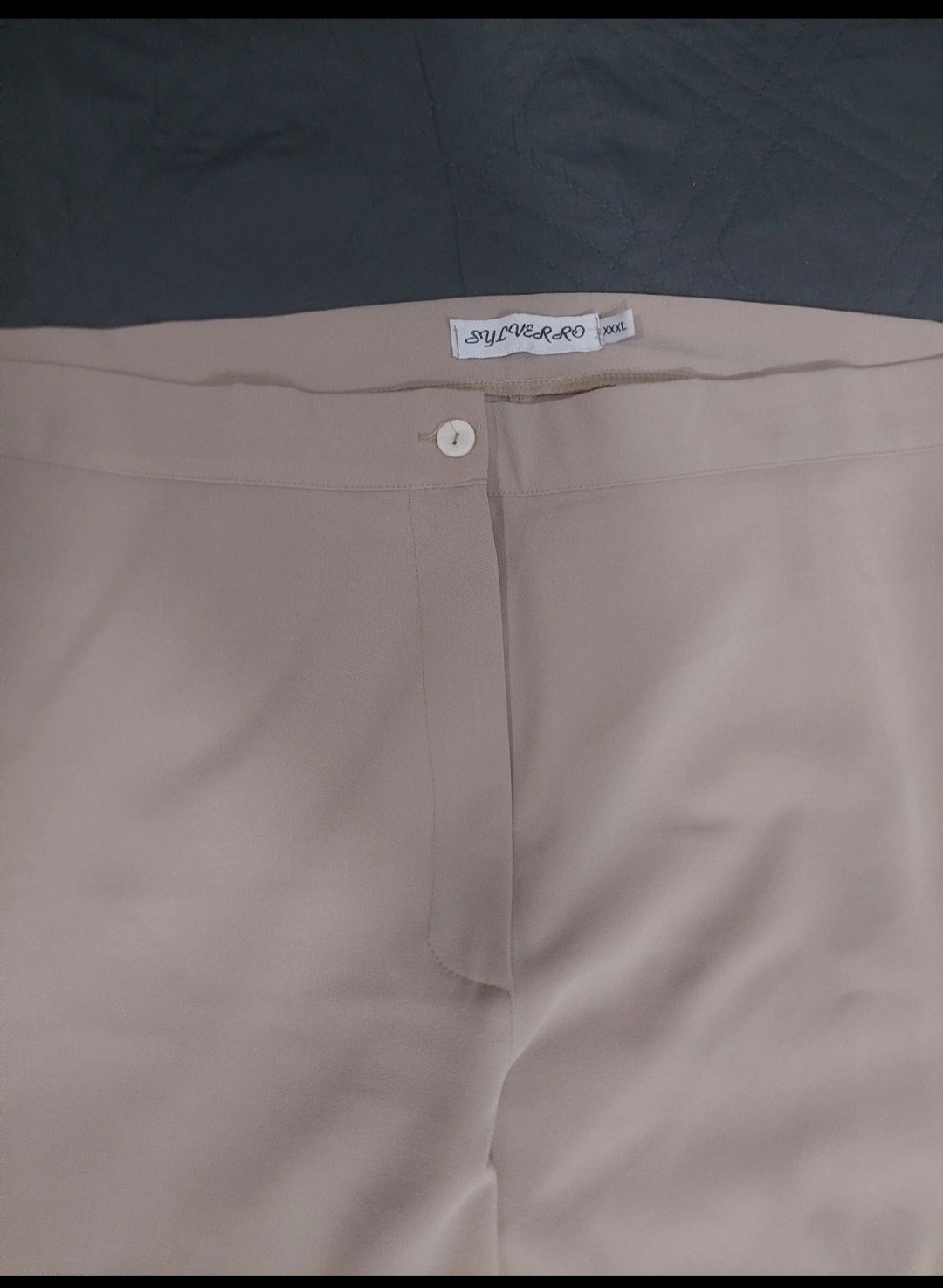 Oblečené 1x, na zadnej.casti prerušený steh na 3 miestach, ináč ako nové, pás Pevný- 53cm, dl- 105cm, šírka stehna- 40cm