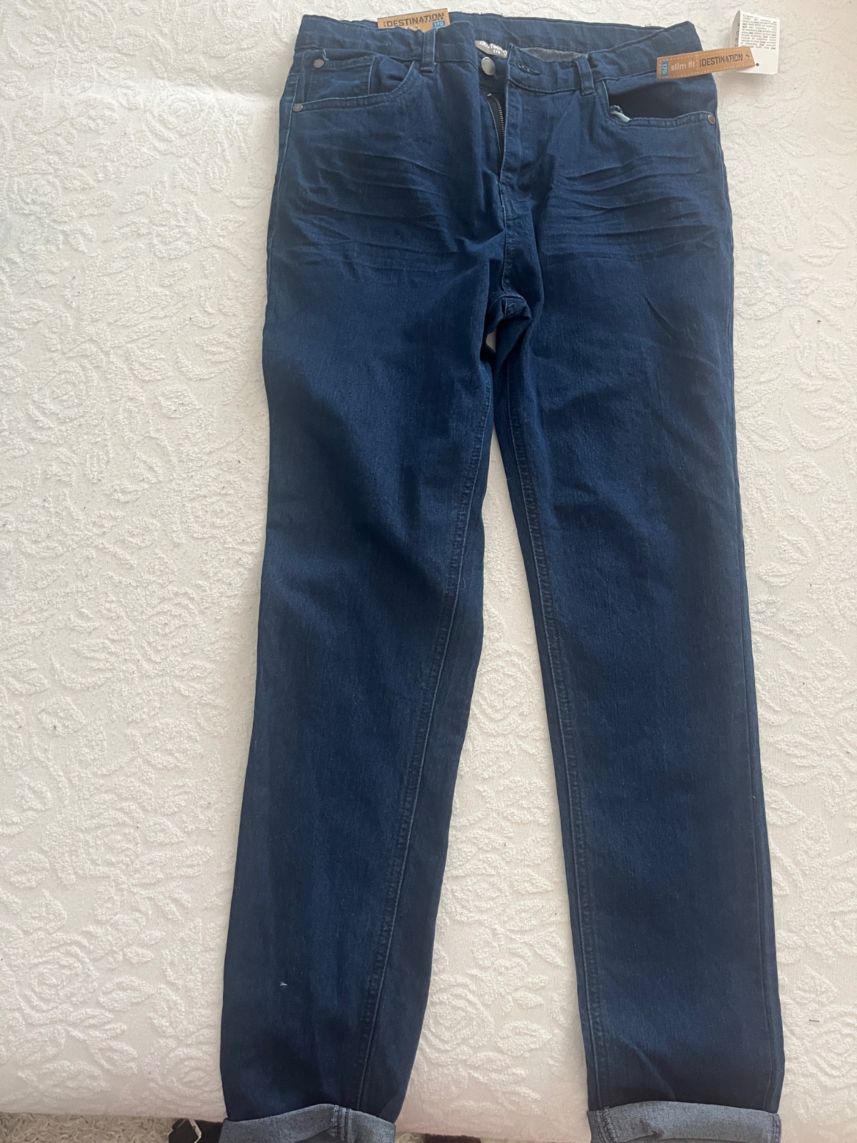 Top stav. Celková dĺžka 98cm, dĺžka od rozkroku 67cm, šírka v páse 2x38cm.