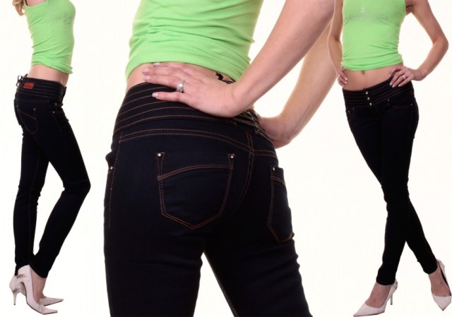 Džínsy v jemne zúženom strihu, pekne tvarujúce postavu. Krásna jeansová tmavomodrá farba, kvalitná jeansovina. Od známej značky Miss Anna, zdobené malými štrasovými kamienkami, bedrový skiny strih, s ozdobným kontrastným štepovaním, v dolnej časti zúžené. Zapínanie na zips a 3 gombičky, ktoré vyzerajú ako malé vybrúsené diamanty. V zadnej časti ozdobná čierna šnurovačka. Dĺžka od rozkroku: 83 cm. Jeansy sú prakticky nové, perfektný stav, majú len jednu malú chybičku - pokazený zips, myslím, že šikovná žienka alebo krajčírka ho určite bude vedieť opraviť, prípadne vymeniť za nový, zips je kratučký, dajú sa teda nosiť kľudne iba zapnuté na gombičky. Veľkosť 36. Sú elastické, prispôsobia sa postave. Materiálové zloženie: 75% bavlna, 24 %PES, 1% elastan. Značka: Miss Anna.