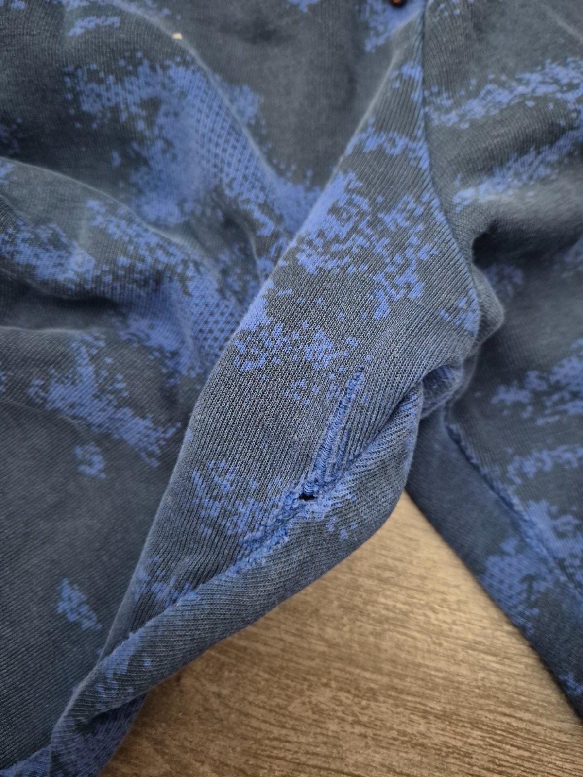 Teplaky maju poskodenia na kolene a medzi nohami