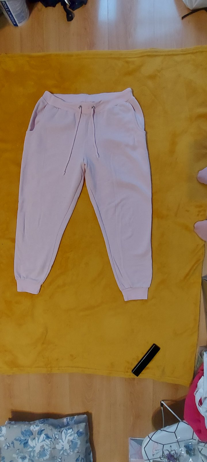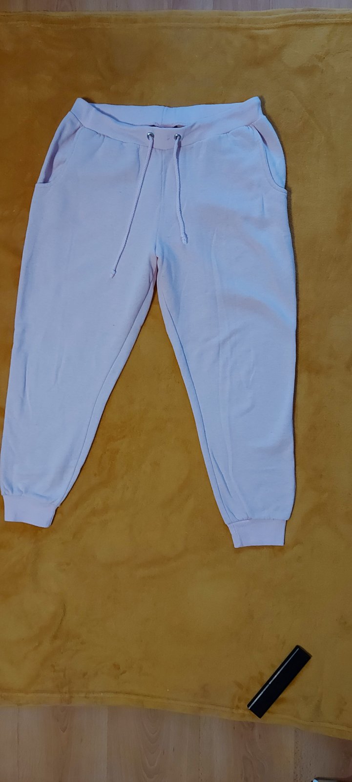 Predám asi 2 krát oblečené tepláky veľ.XL ale je to skôr L ,rozmery šírka 100 cm ,dĺžka 94 cm. Farba bledoružová, krajšia ako na foto. Cena plus pošta.