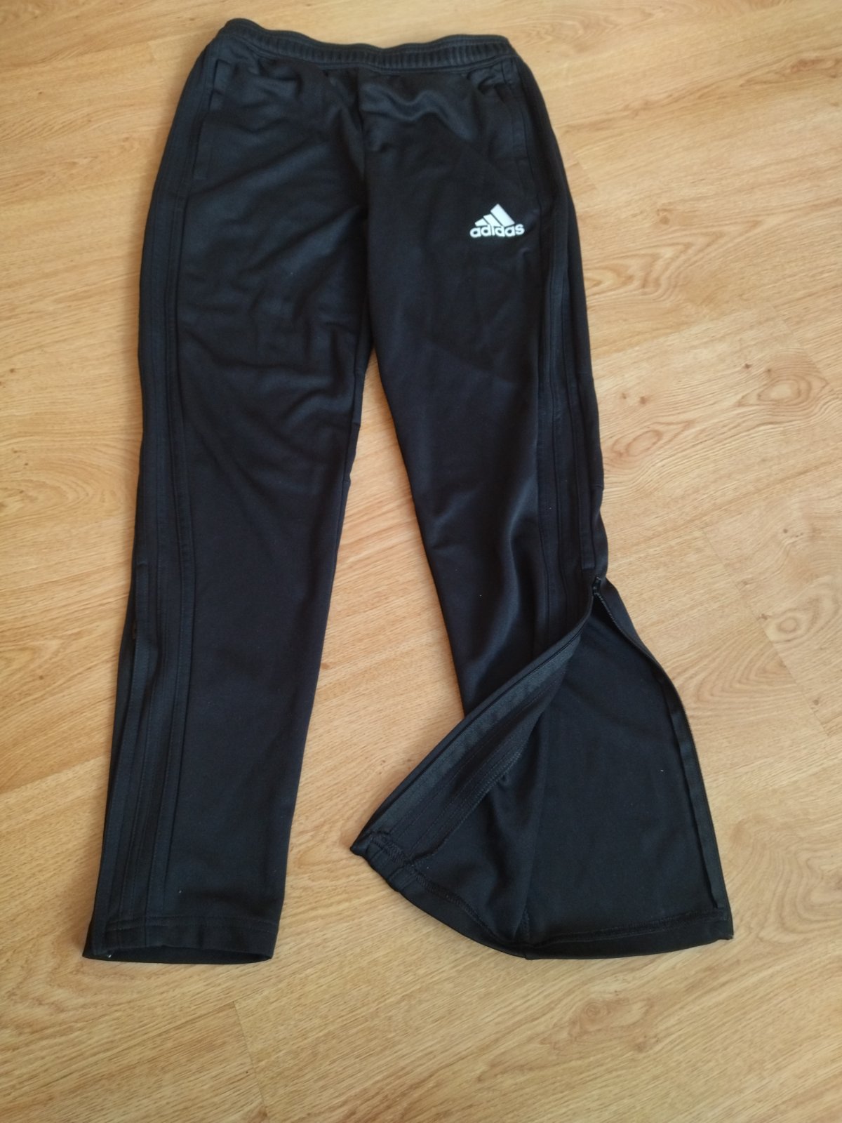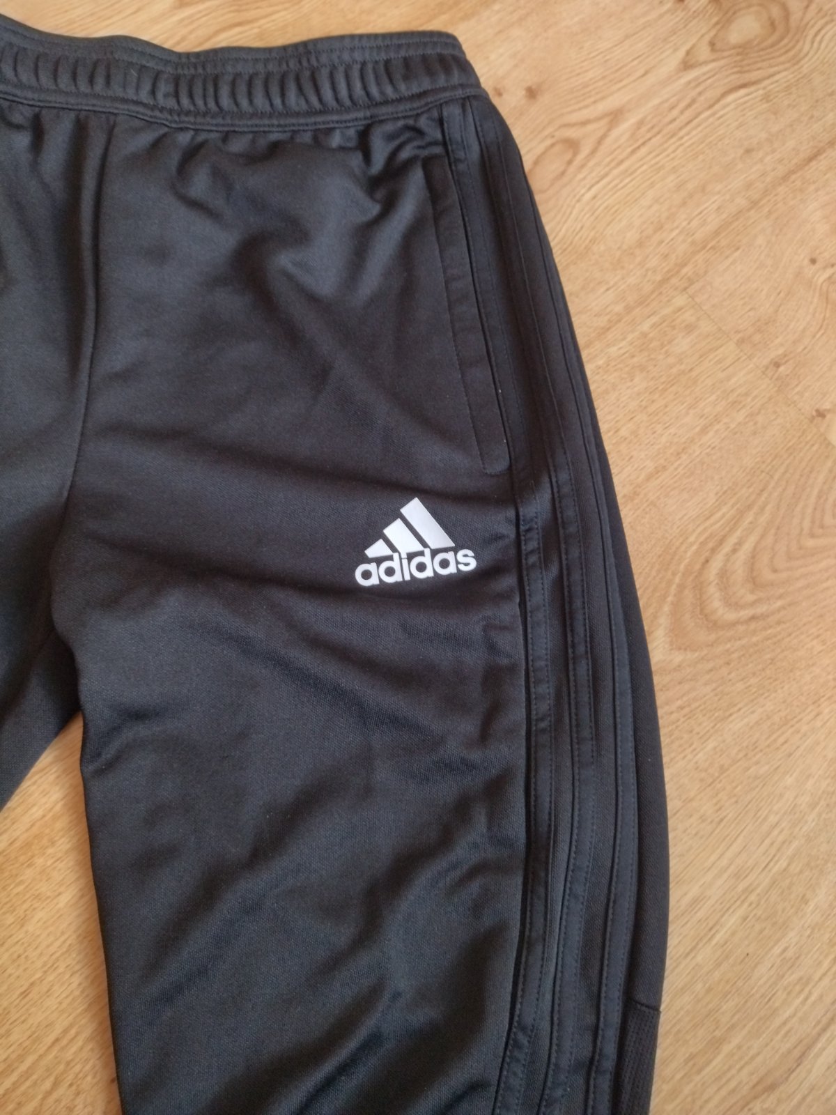 Na bočných stranách od vrchu po spodok tri prúžky Adidas.