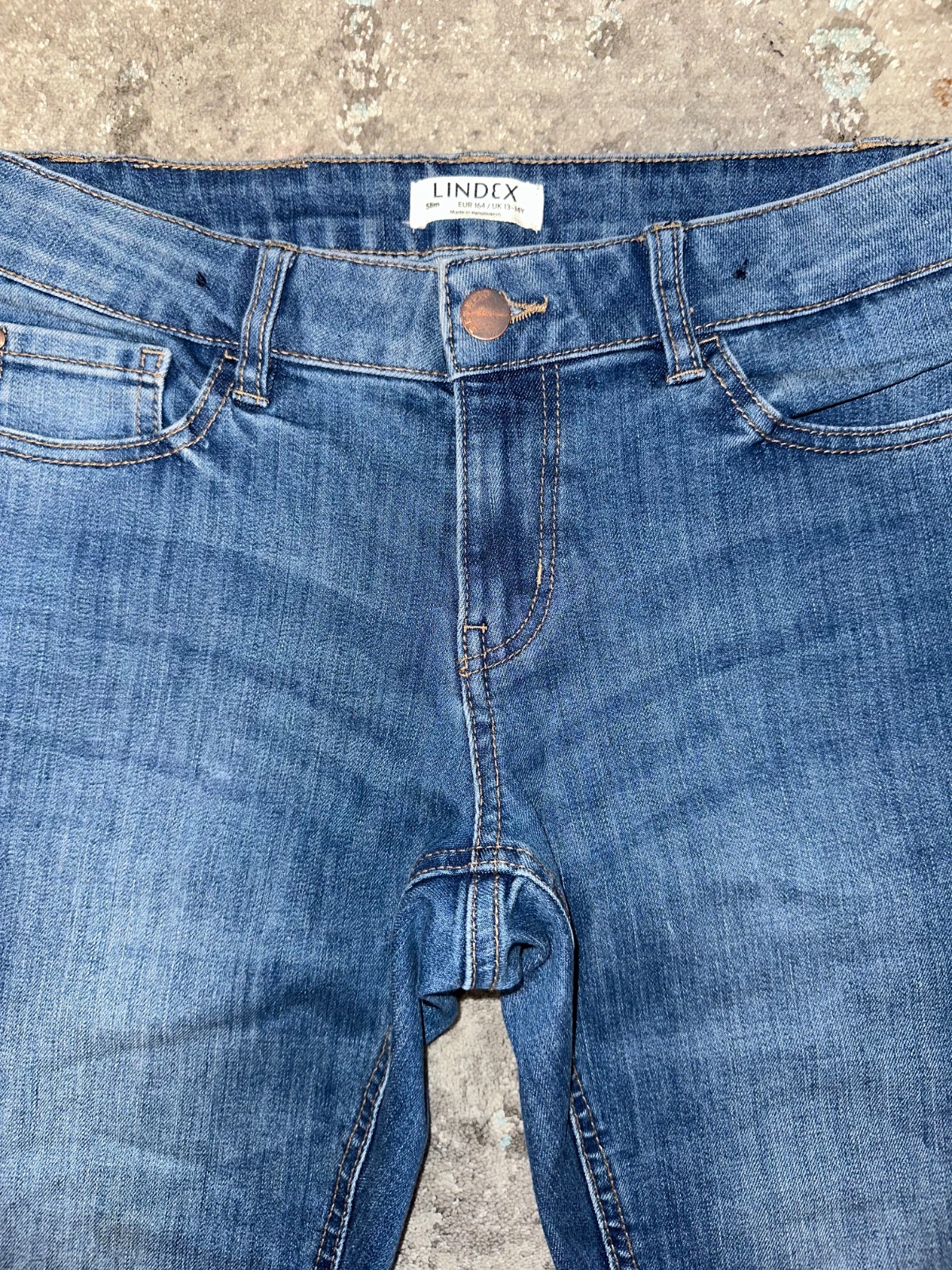 Nosené rifle,rovný strih. Bez poškodení. Pás sa dá prispôsobiť gumičkou. Veľ. 164, zn.Lindex.