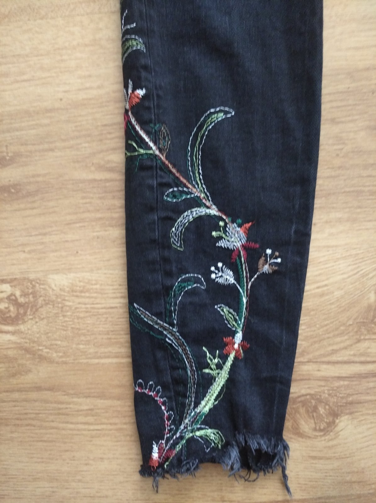 Veľmi pekne, minimálne nosené, vyšívané, elastické rifle.