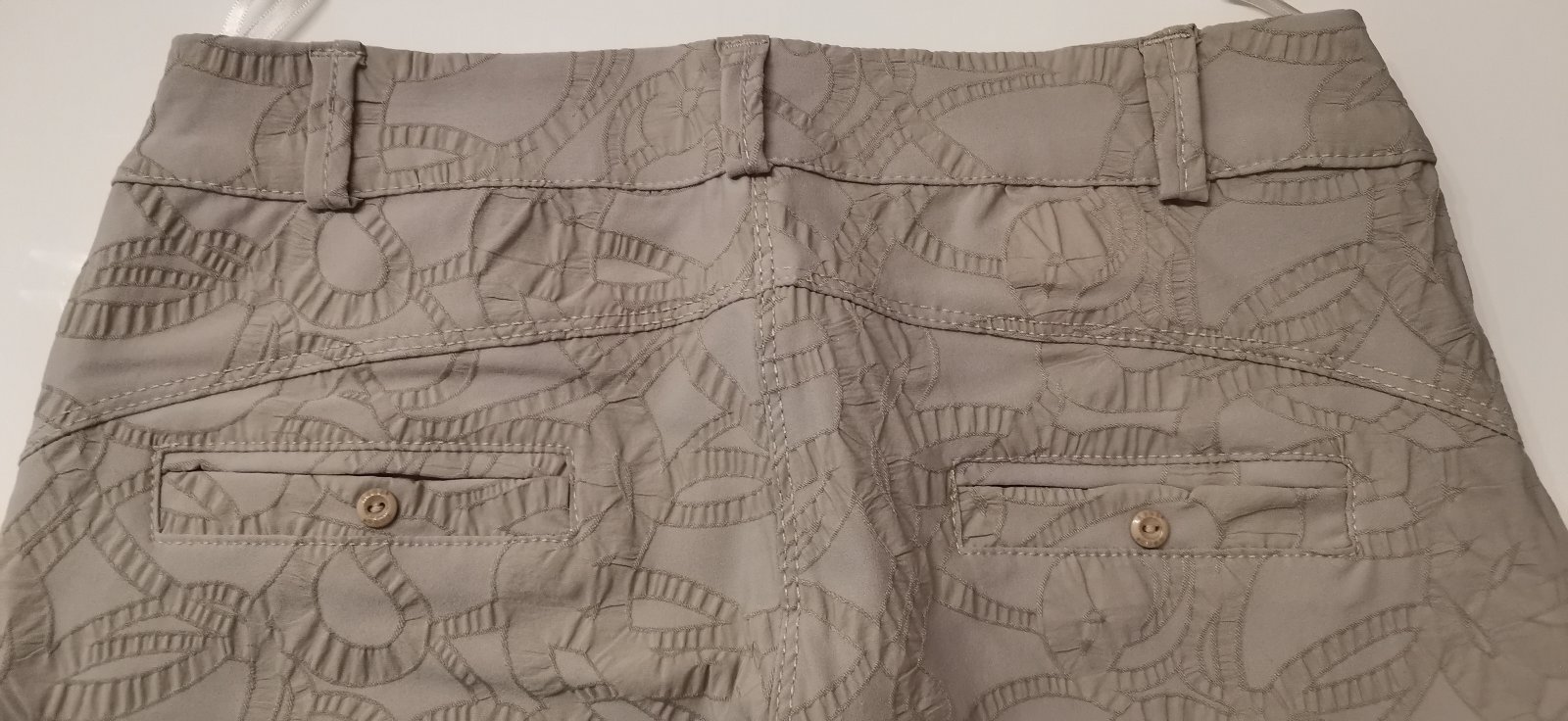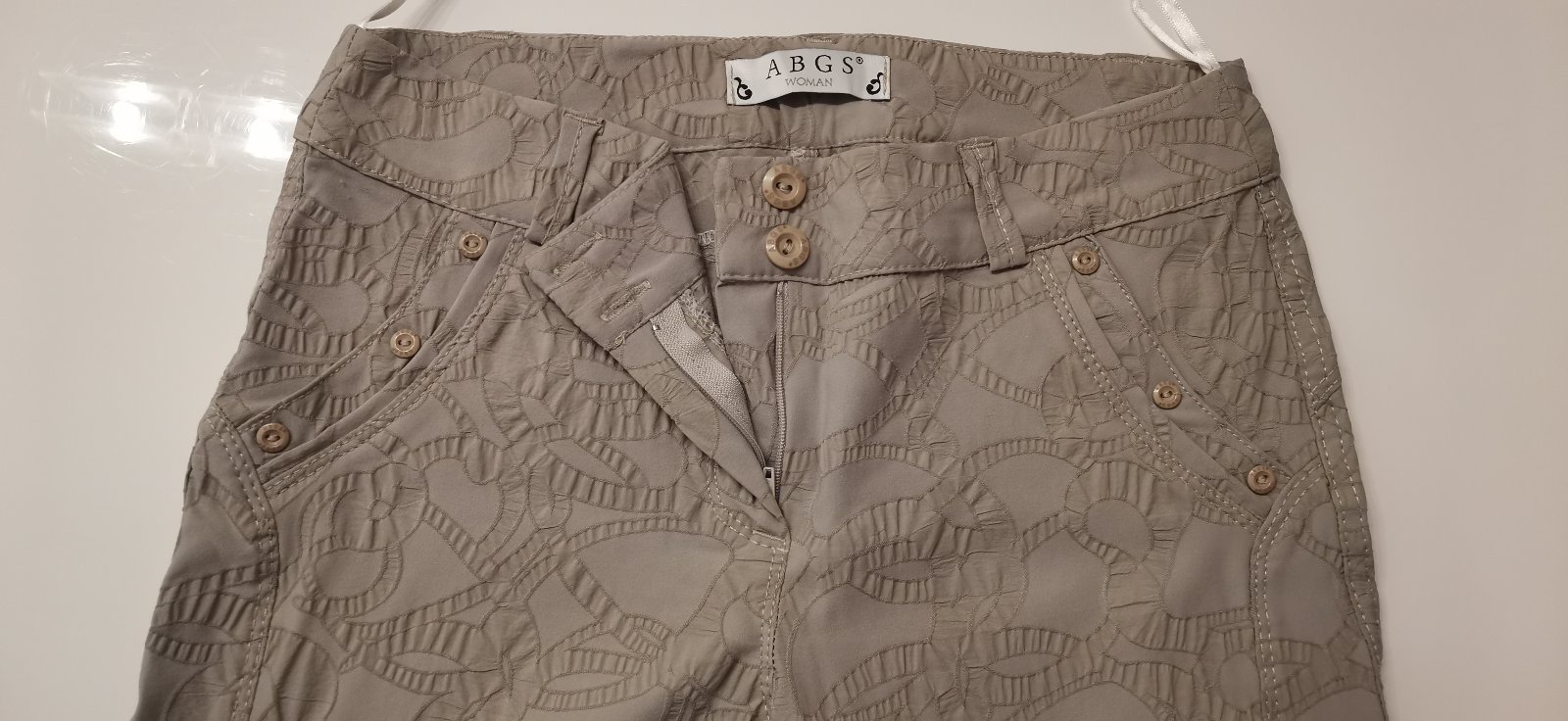 len vyskúšané, píše veľ. 40, ale určite menšie, pás 37 cm, dĺžka 79 cm, látka pružná - 65% bavlna, 30% polyester, 5% lycra, pás veľmi nepovolí, ale boky a stehná áno