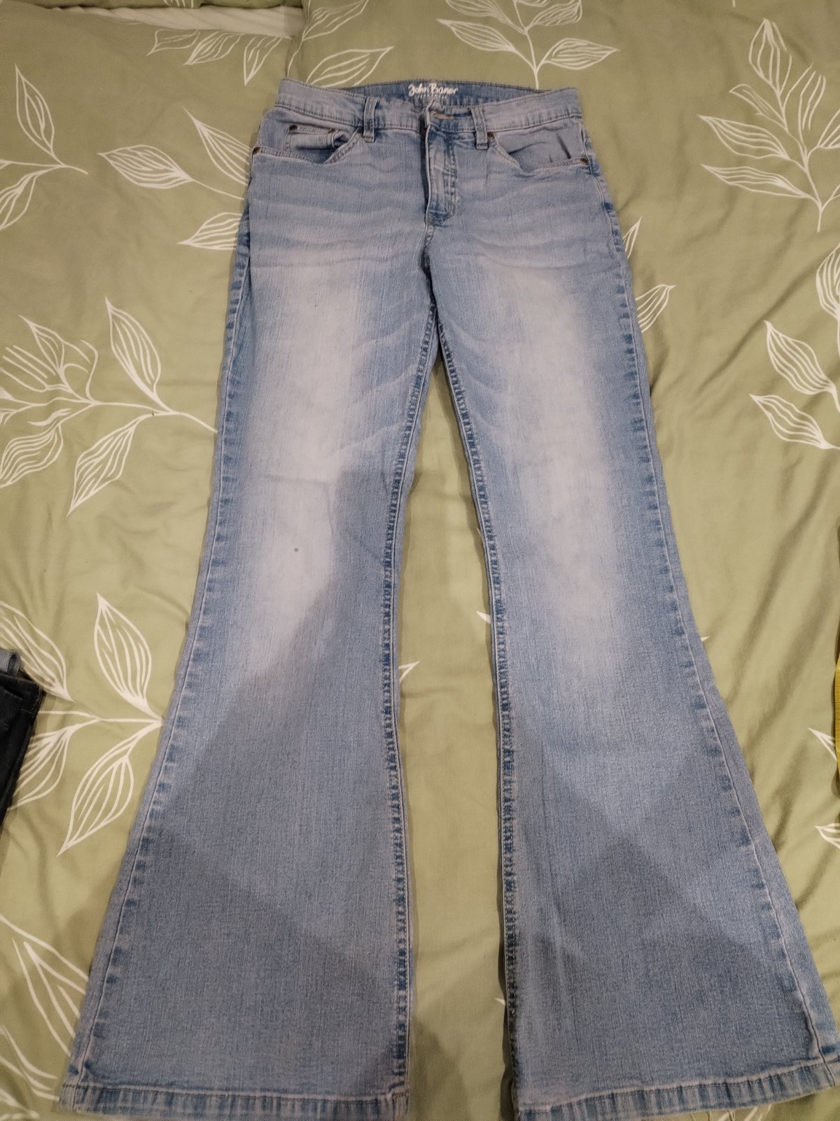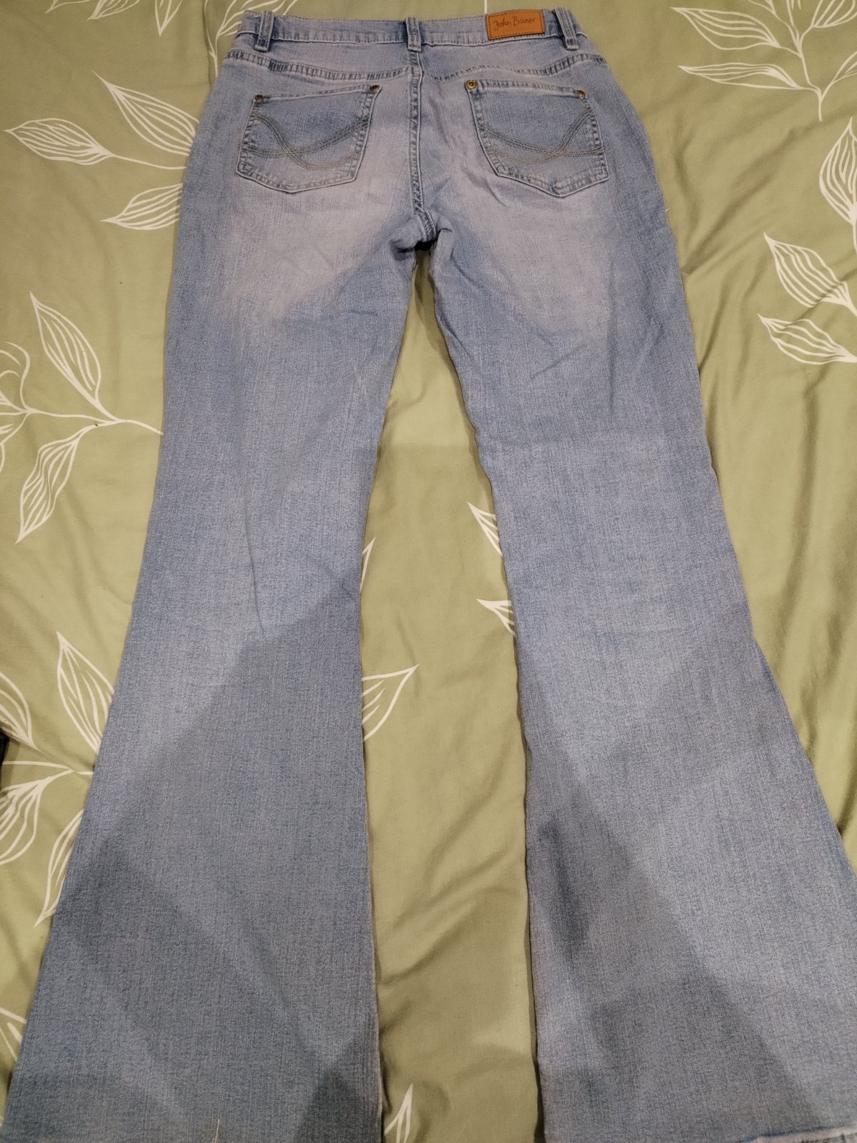 Nosené, viď spodok riflí,dĺžka 105 CM, isto ešte niekoho potešia, zvonove, vpredu vysuchany efekt. Cena 5 plus pošta