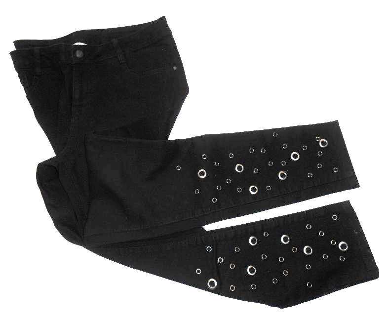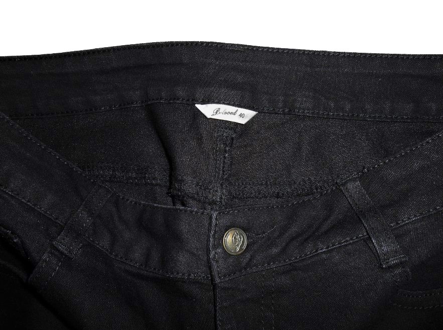 predám dámske rifle čiernej farby v dobrom nosenom stave, píšu veľkosť 40, značka Beloved, materiál: 69% bavlna, 19% viskóza, 11% polyester, 1% elastan, zapínanie na zips a gombík, pútka na opasok, dve predné a dve zadné vrecká, dekorované vybíjaním