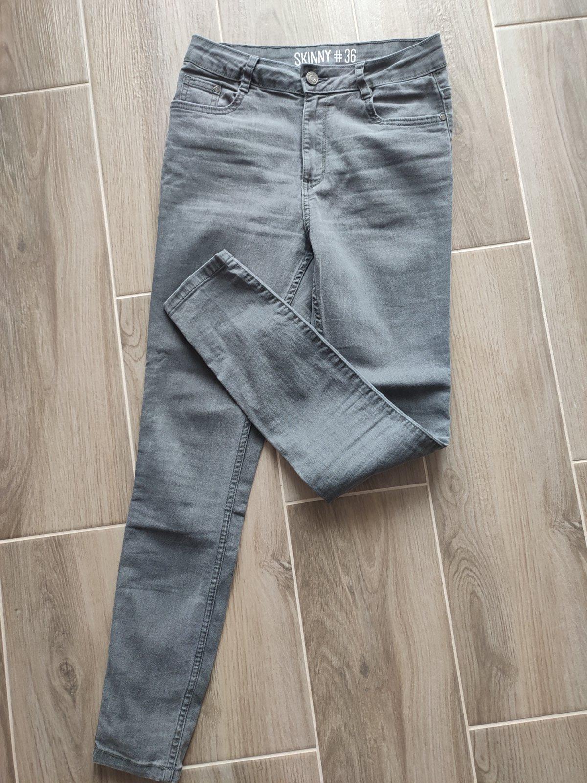 Strečové rifle, skinny, elastické. Veľkosť 36, čo je XS-S, pás je vyšší. Mne sú už malé.