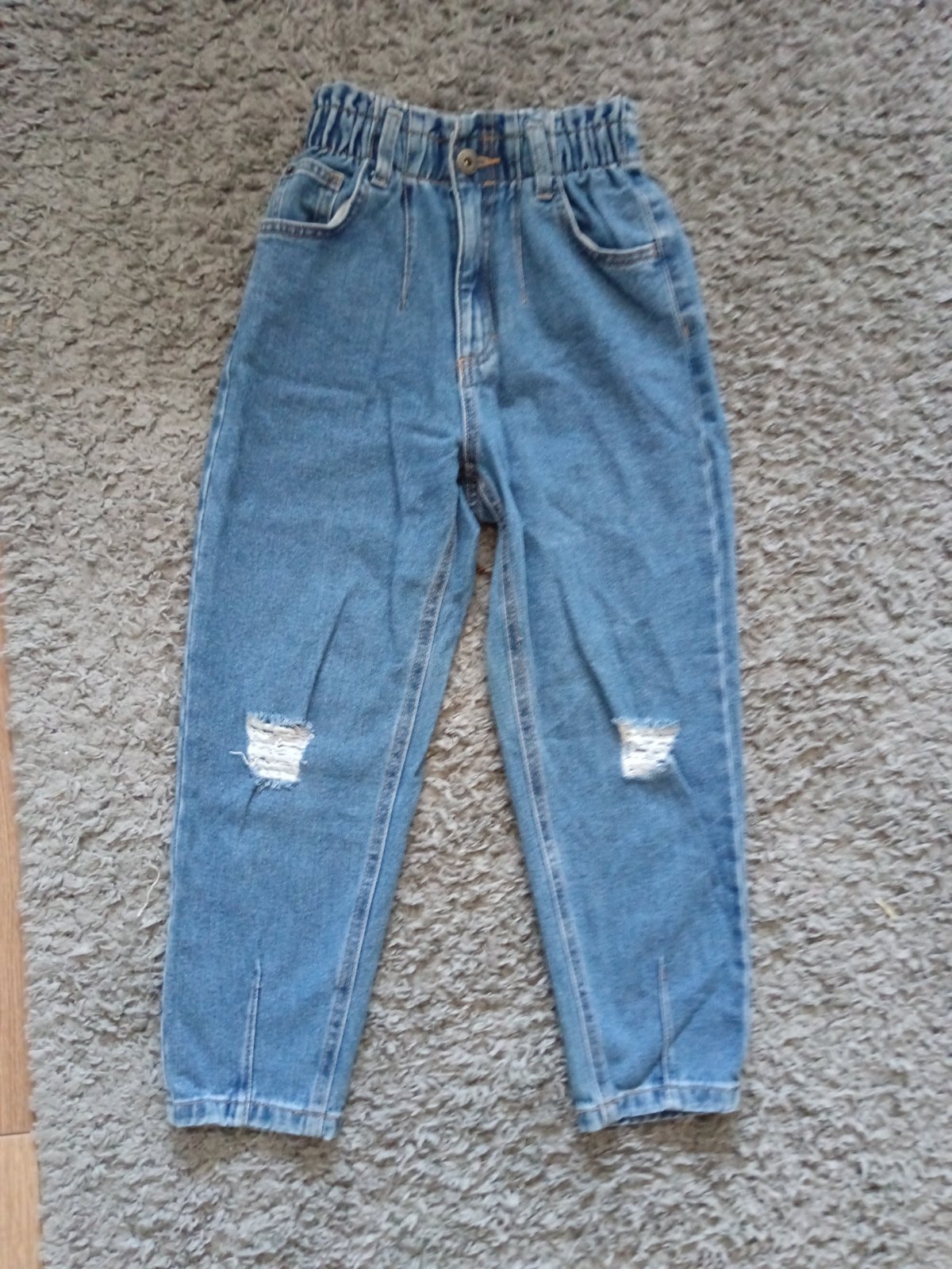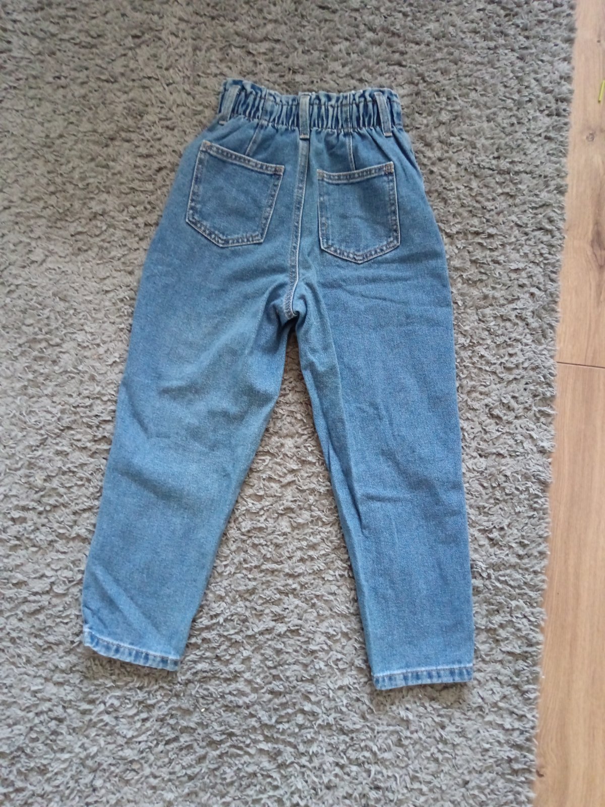 Predám rifle široké zn. Reserved, veľ. 134, dĺžka 80cm, pás s posúvateľnou gumou, nezmenšené t.j. najviac 31cm. Za 13e.