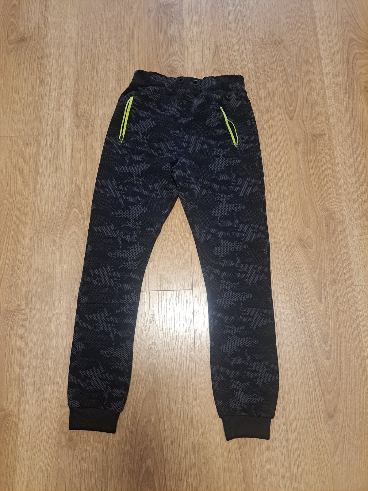 Tenké maskácové tepláky výborný stav. Veľkosť 146/152.