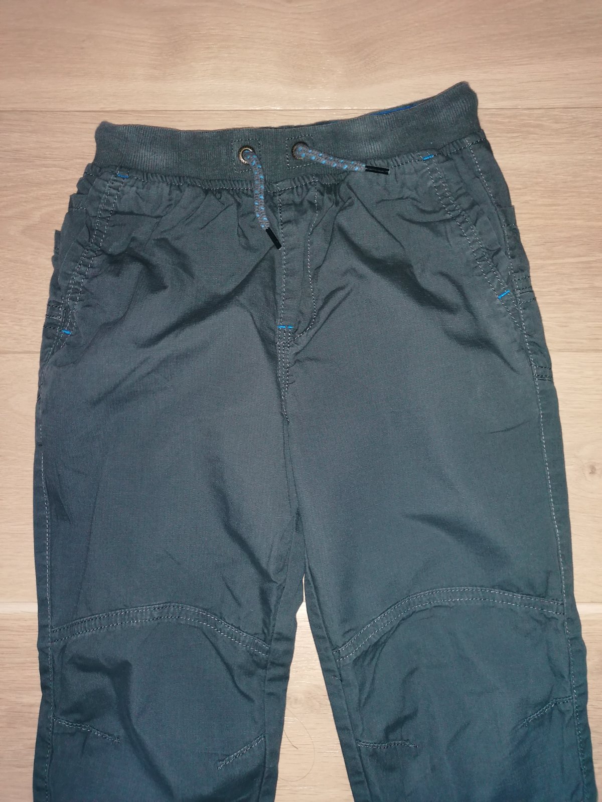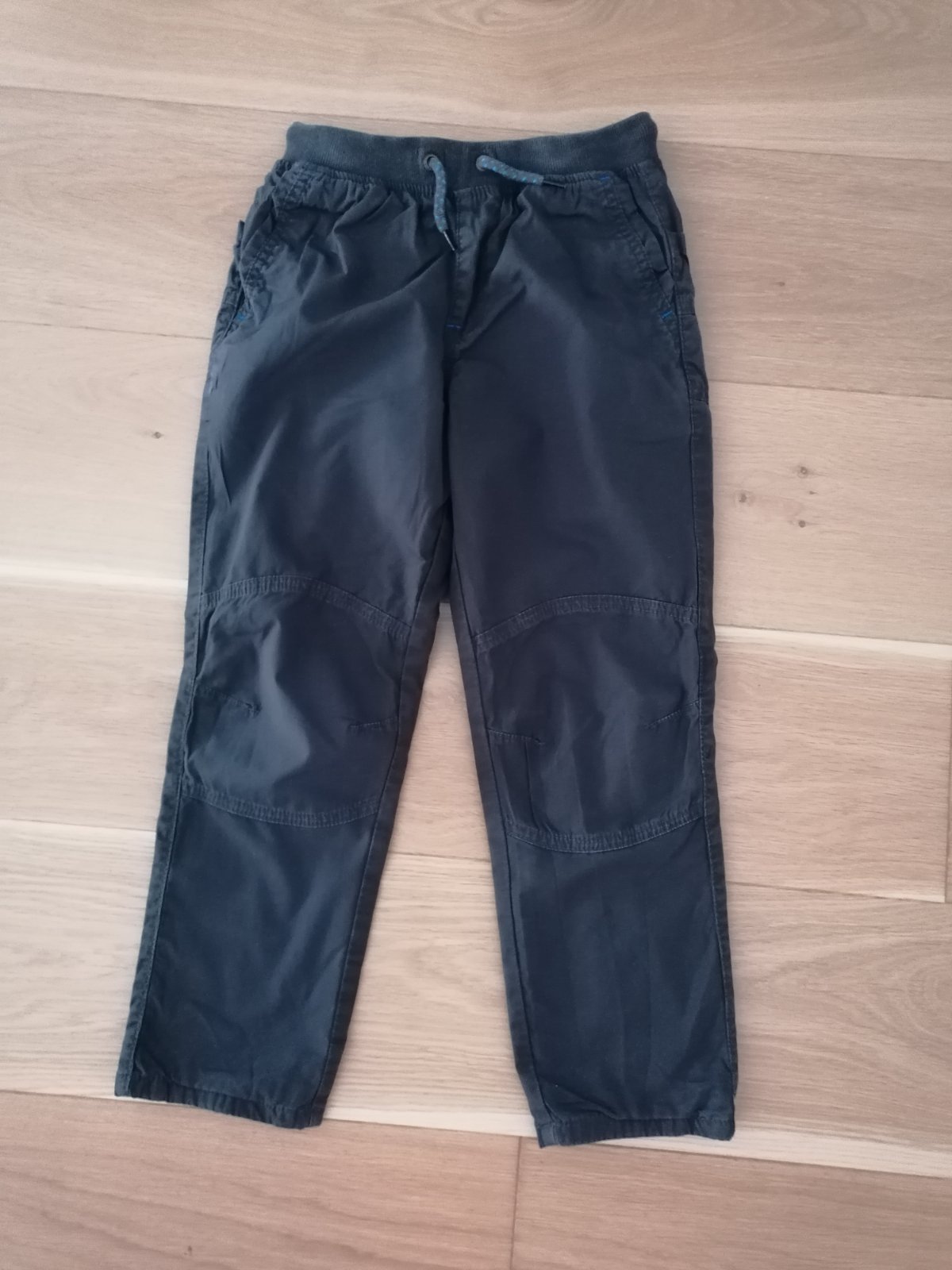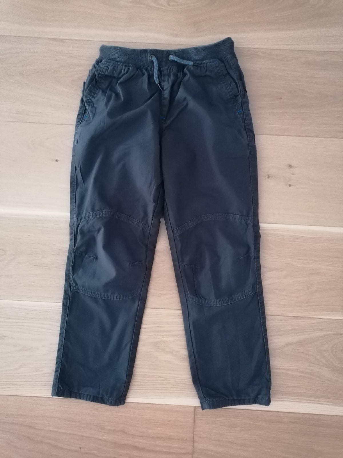 Podšité nohavice zn. Next veľ. 122, 100% bavlna, podšívka 100% bavlna, pás na gumu + šnúrky na stiahnutie, vpredu aj vzadu vrecká, farba tmavošedá.