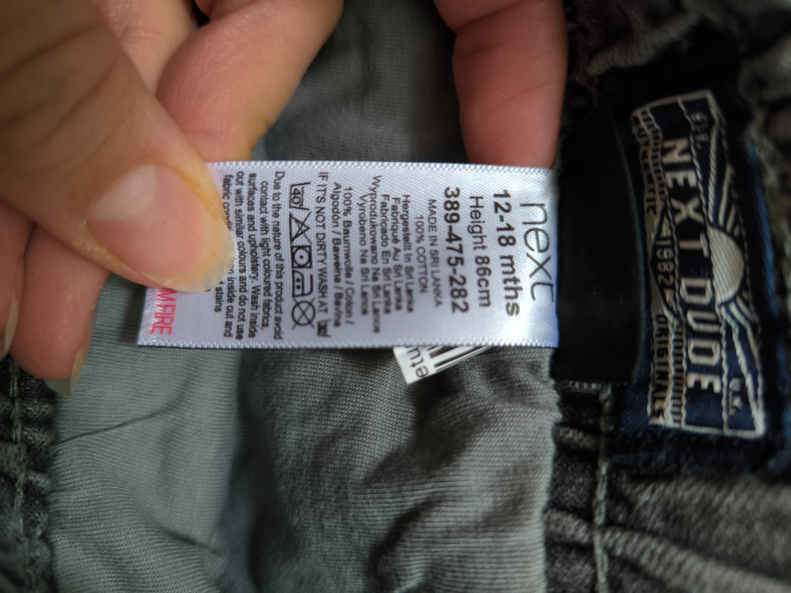 Nove bez pozitia rifle znacky Next, velkost 86, v pase su na snurku, max 56cm.