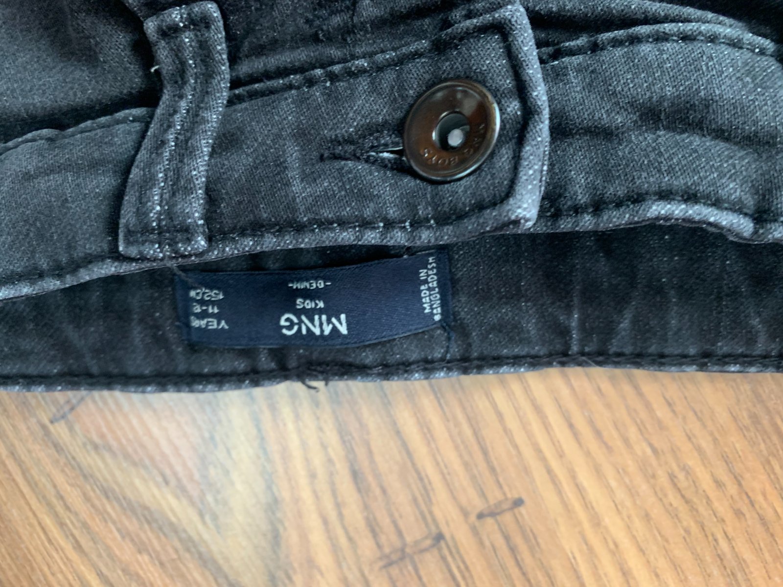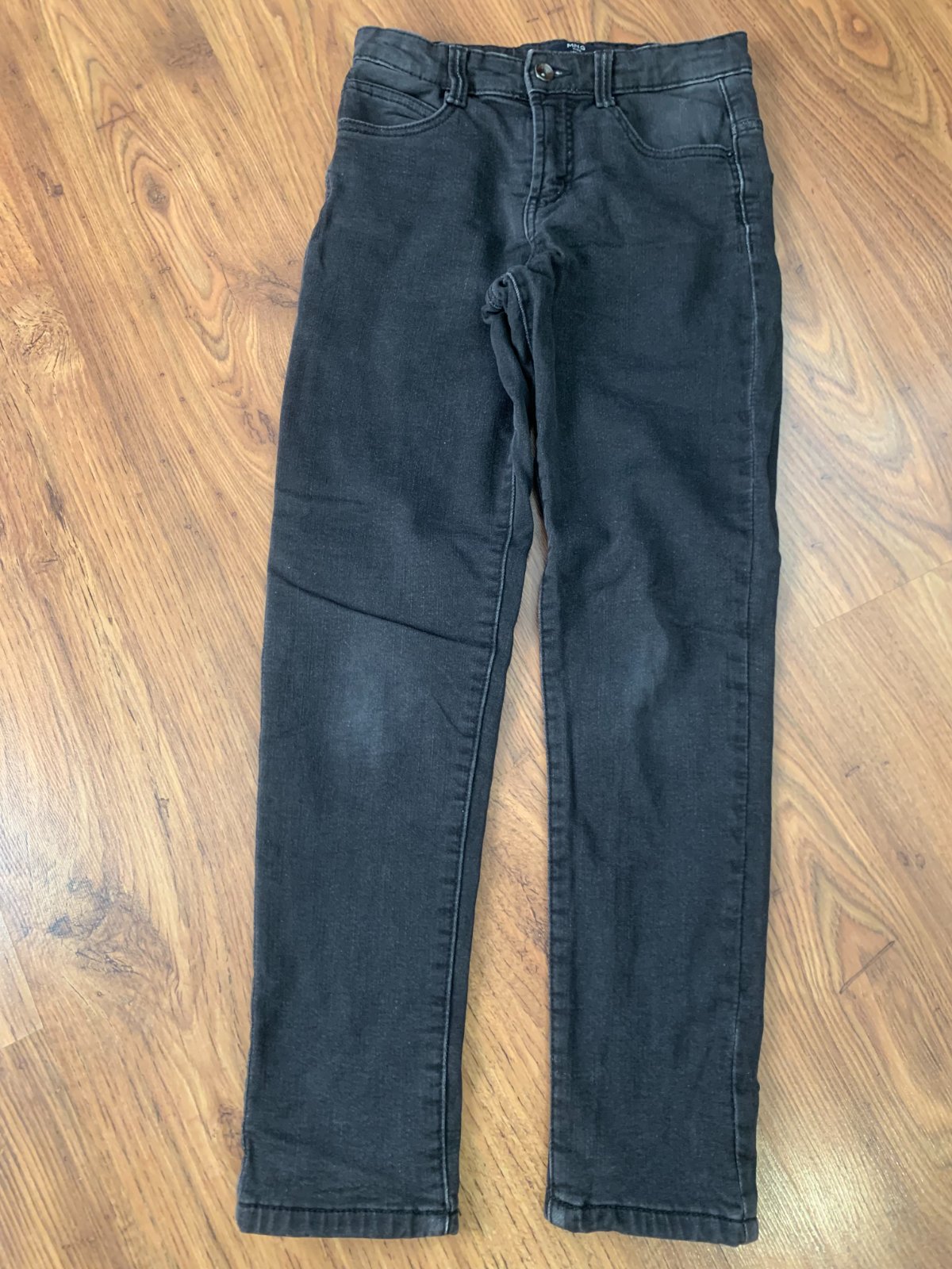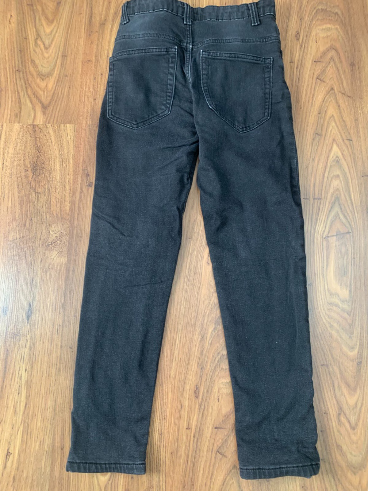 Krásne. Nastaviteľné v páse funkčný zips. Bez dier. Dierky na lesoch vreciek boli od novoty. Velkostne cca 146-152cm.