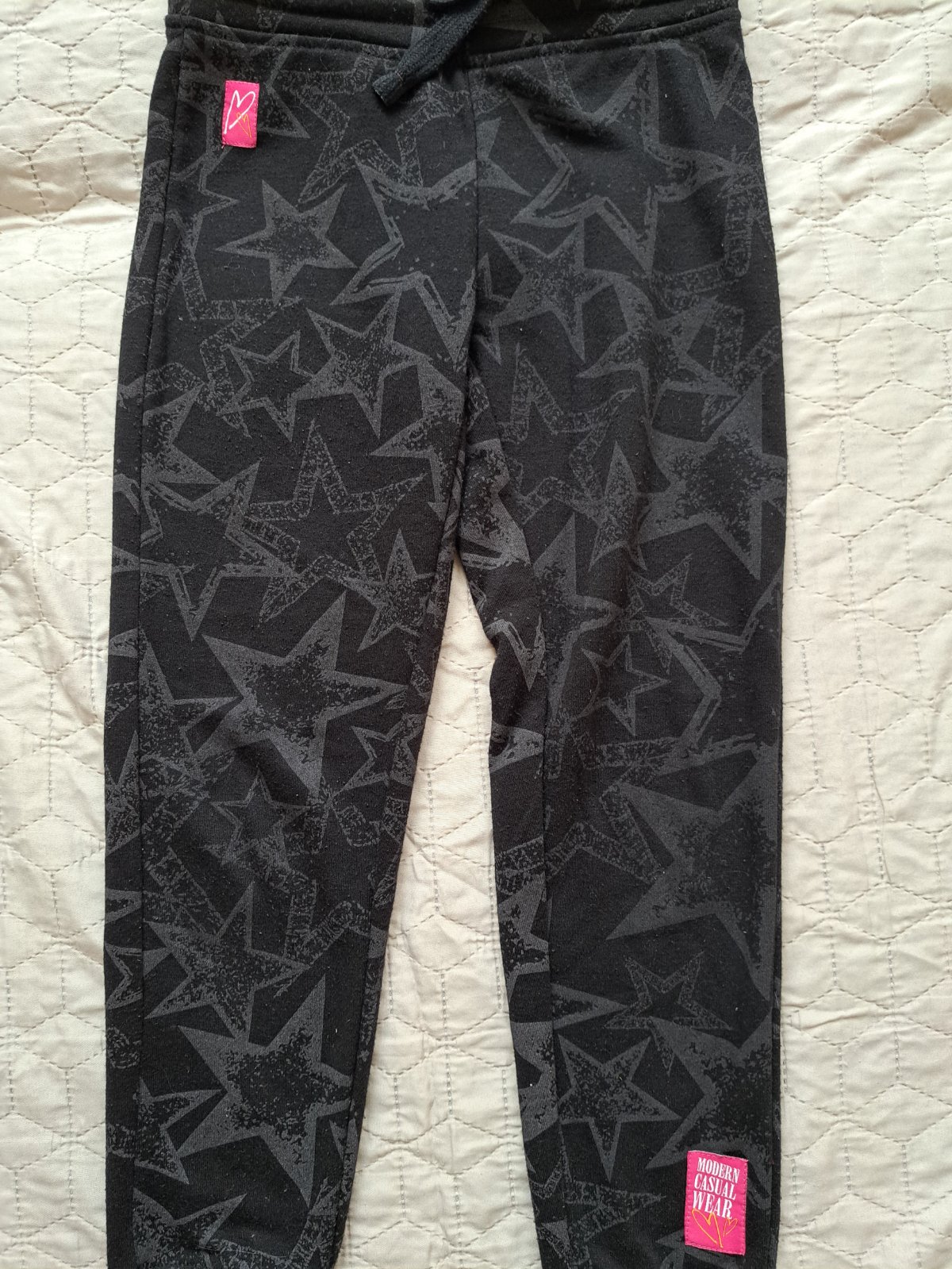 Iba oprate, hrubšie tepláky, materiál polyester. Veľkosť 128/134.