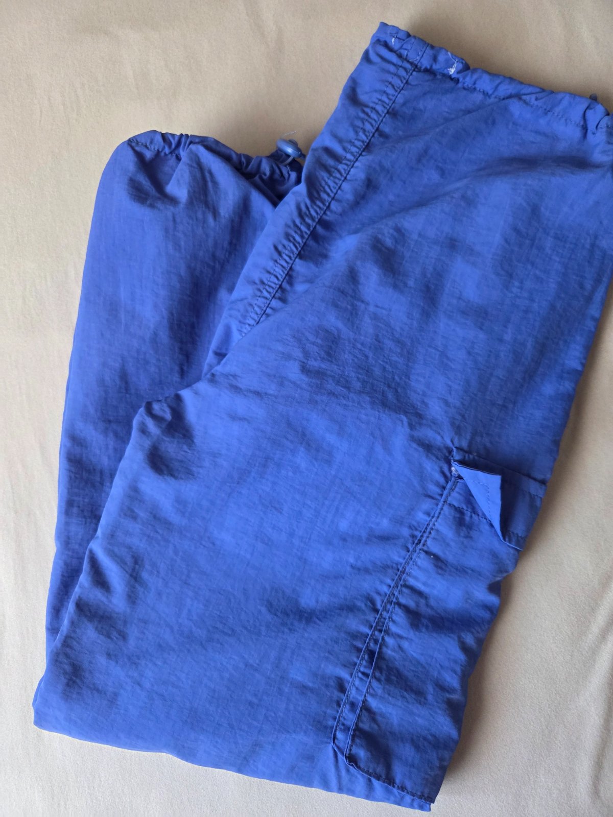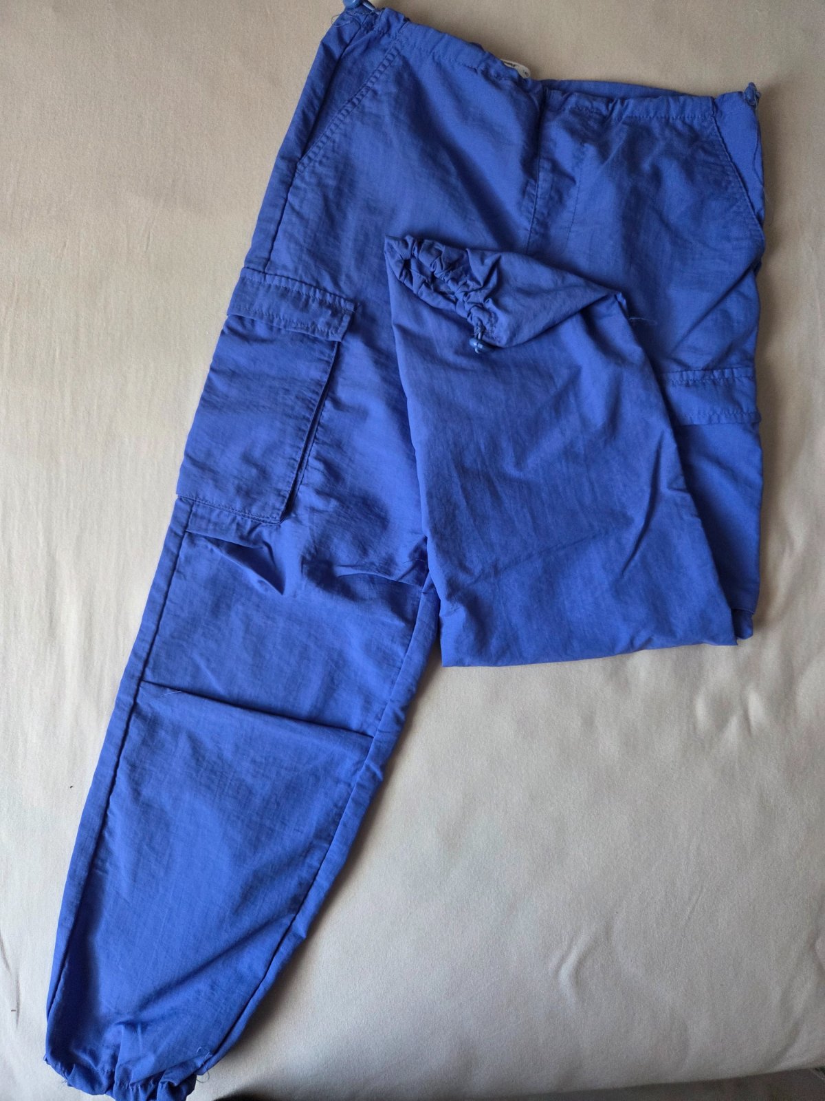 Príjemné športové "šušťákové" nohavice, bočné vrecká, sťahovacie na páse na bokoch. Super stav.