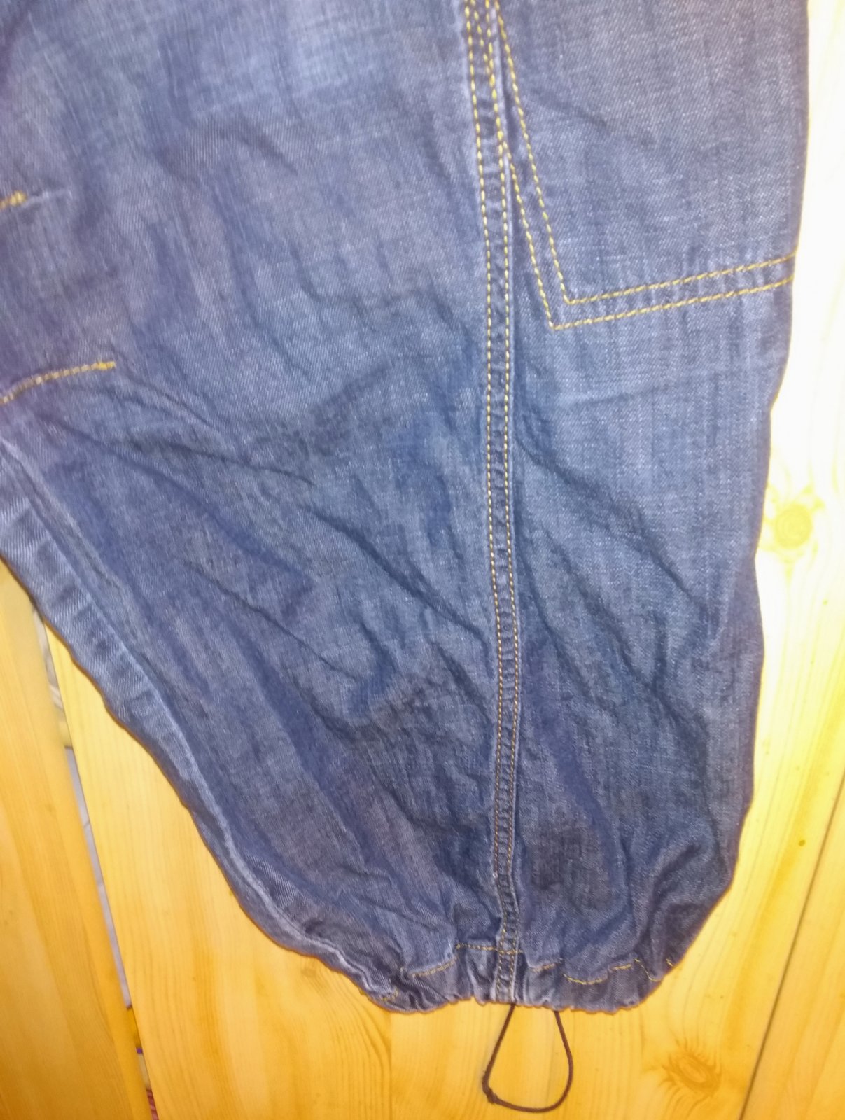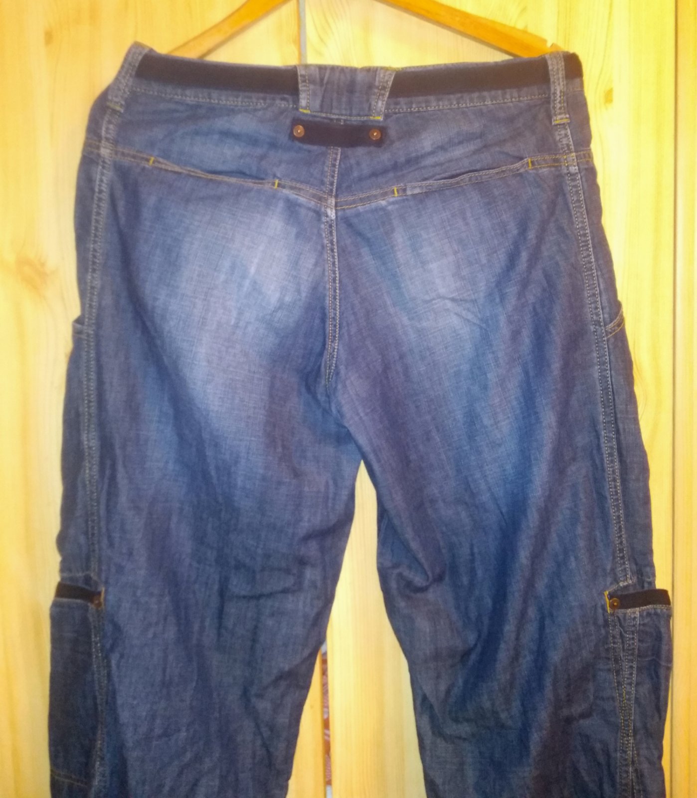 kapsacove rifle ,velmi malo nosene..tenka riflovina vhodna na leto...pas je pevny ale je tam snurka na regulovanie...pas 2*40cm...boky 2*57cm.. cela dlzka 100 cm