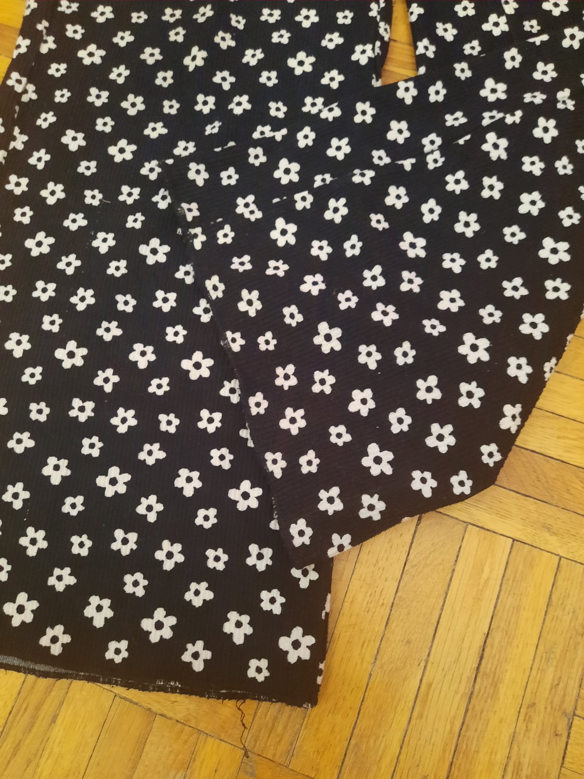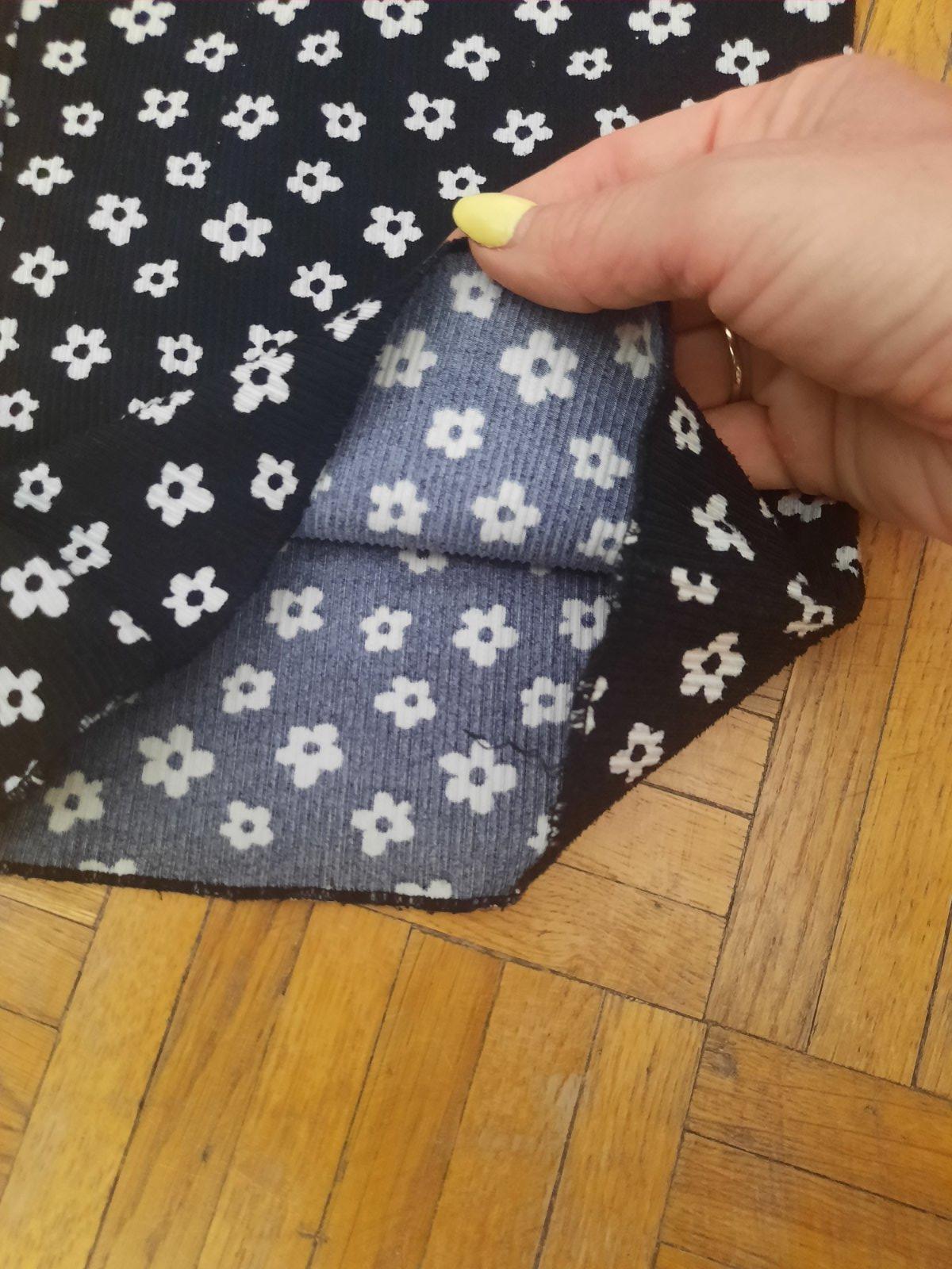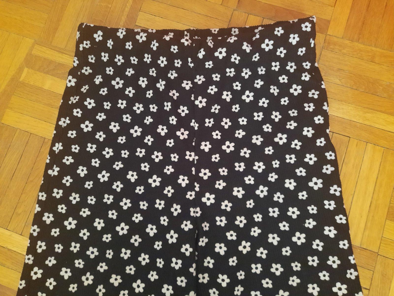 Veľmi pekné kvetinkové širšie nohavice z rebrovaného materiálu. Pás je na gumu. Veľmi dobrý stav.