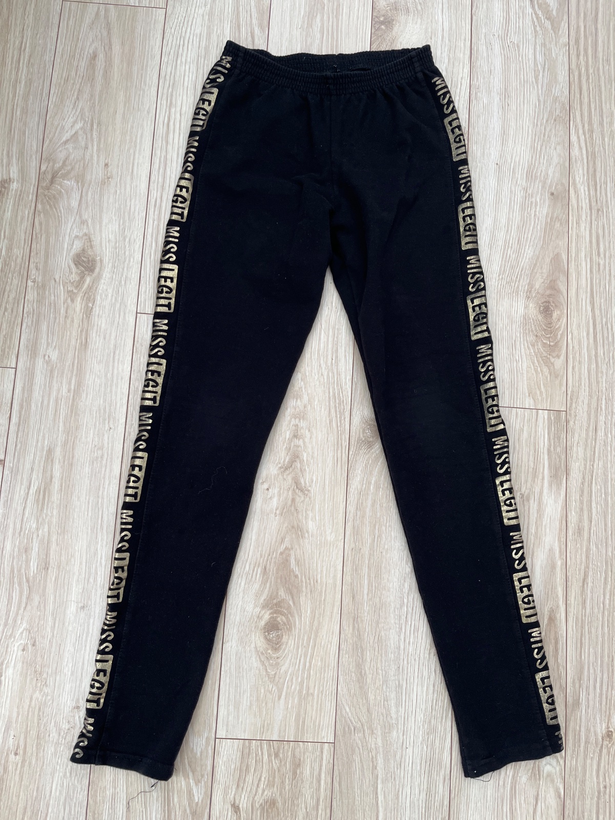 Predam jemne zateplene leginy-nohavice so zlatou legou, velmi dobre sedia na pase, povodna cena 22 EUR. Vrecka vzadu. rozmery: celkova dlzka 90 cm, dlzka od rozkroku:69 cm, sirka pasu polovica-28 cm nenatiahnute a natiahnute 45 cm. Vyrobca uvadza 164, mozno skor 158/164.