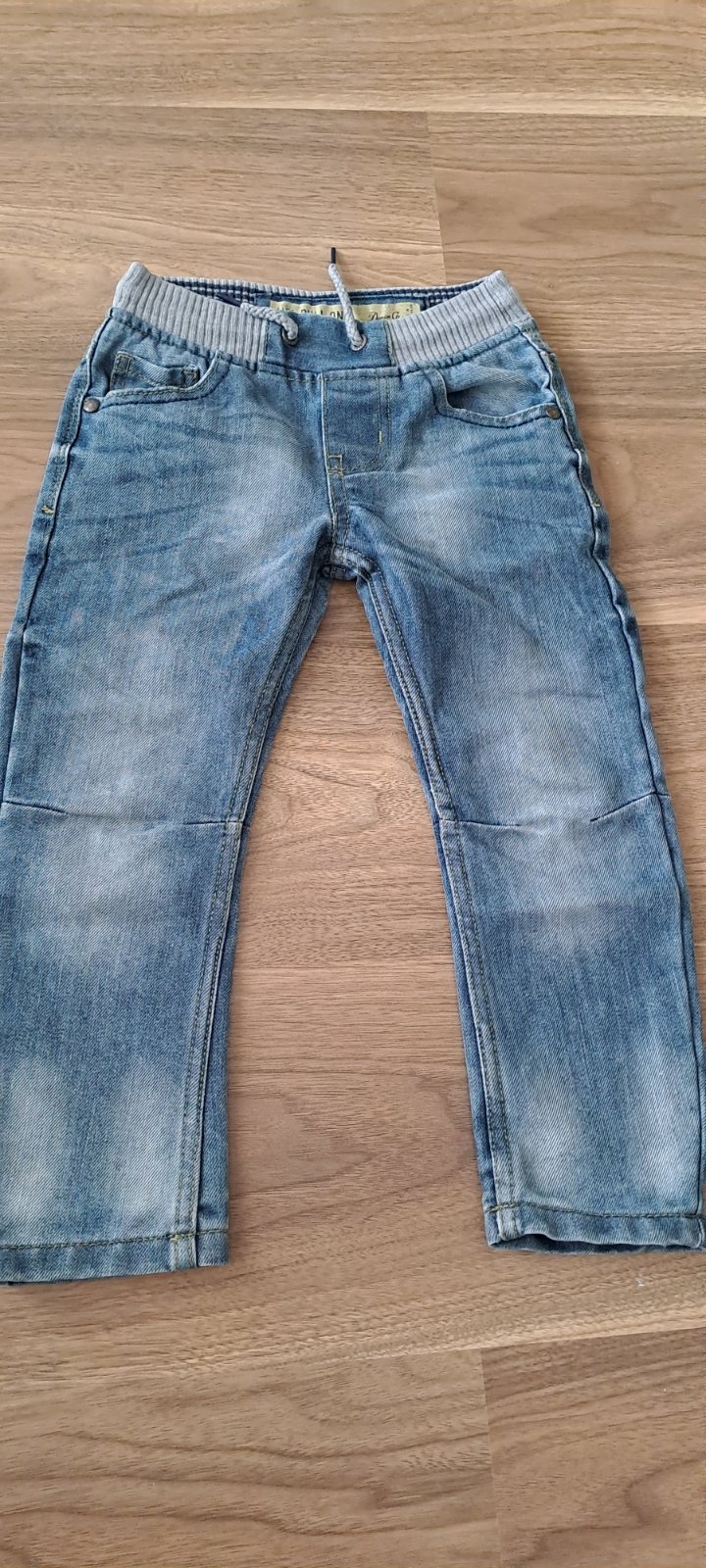 Ponúkam na predaj chlapčenské frajerské rifle, značky Denim Co, veľkosť 104 cm (3-4 roky). Modrá farba, vyšúchaný motív. Rozmery: dĺžka 58 cm, od rozkroku: 38 cm. Cena 3€.