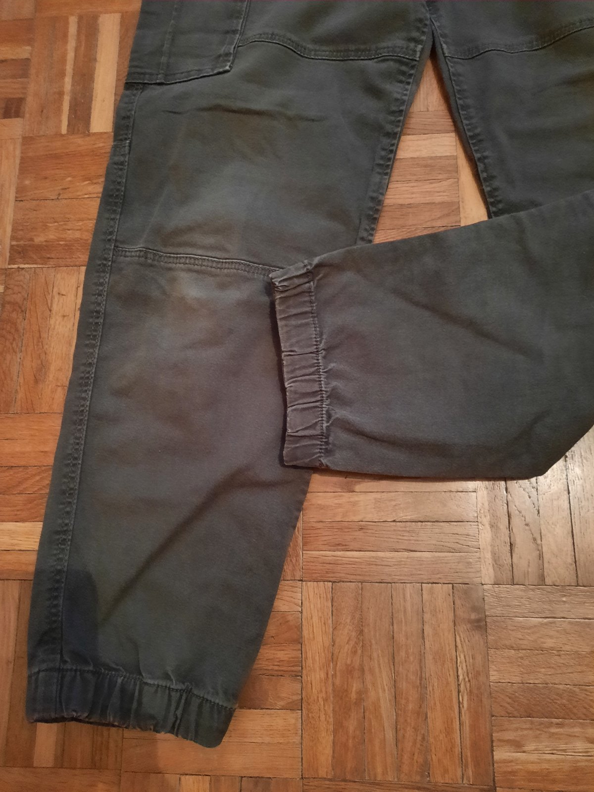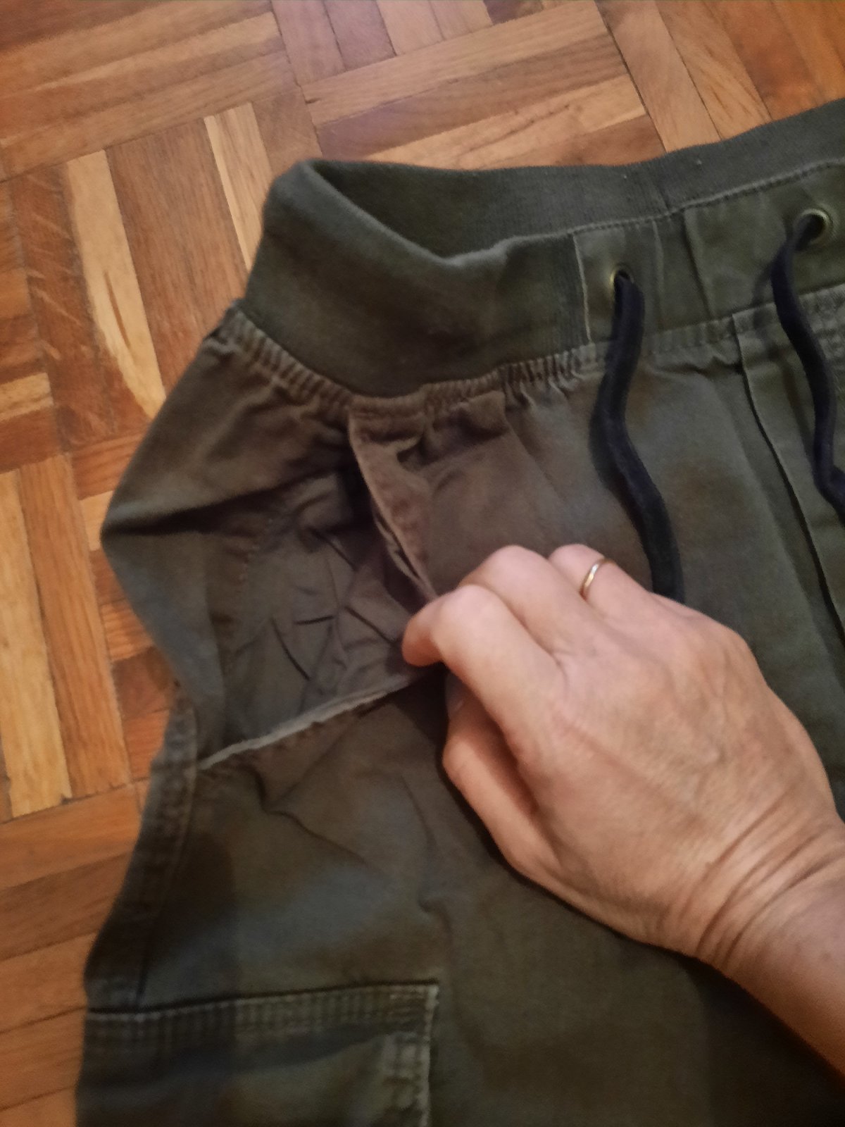 Frajerské kapsáčové nohavice. Pás je na gumu+ šnúrku. Vačky sú vpredu, z boku na sáre, vzadu sú iba ozdobné. Sára dole končí gumou.
