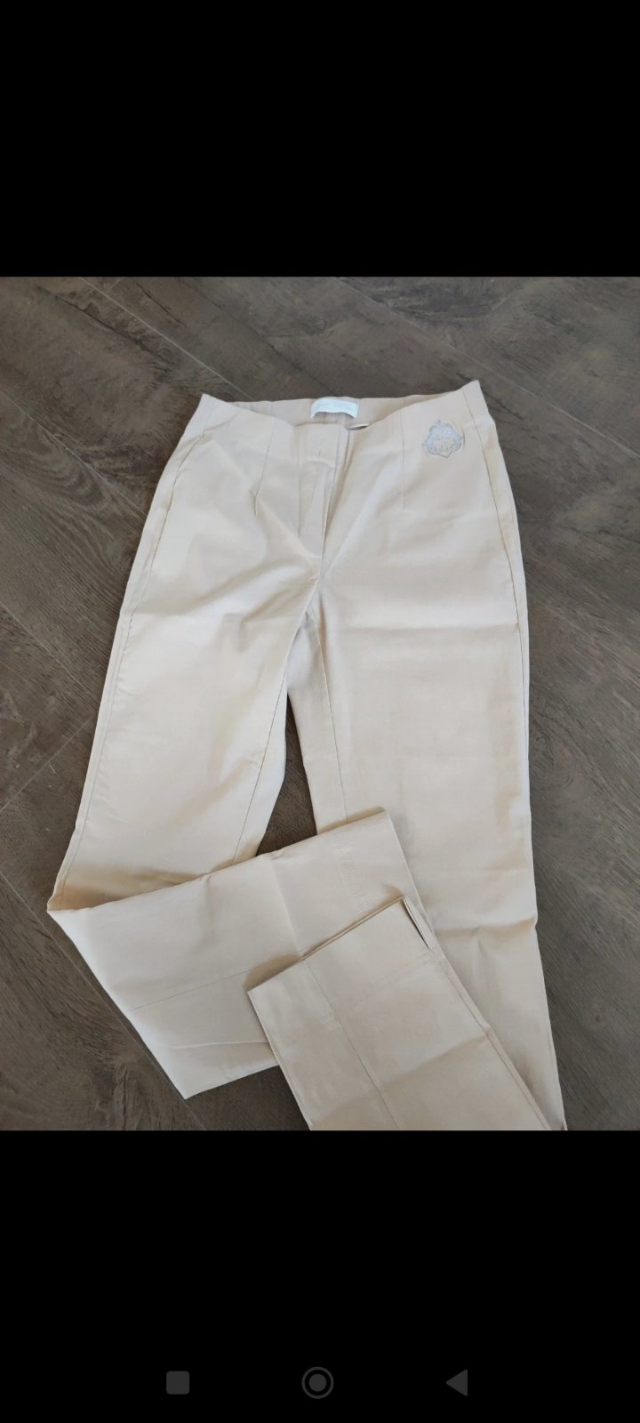 Malo nosene slimove nohavice. Elasticka latka. Pohodlne na nosenie. Bez poskodeni. V dolnej casti razporok na funkcny zips. Sirka cez pas 40cm Sirka cez boky 47cm az 50cm po natiahnuti Dlzka noh...