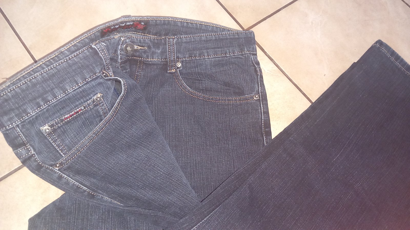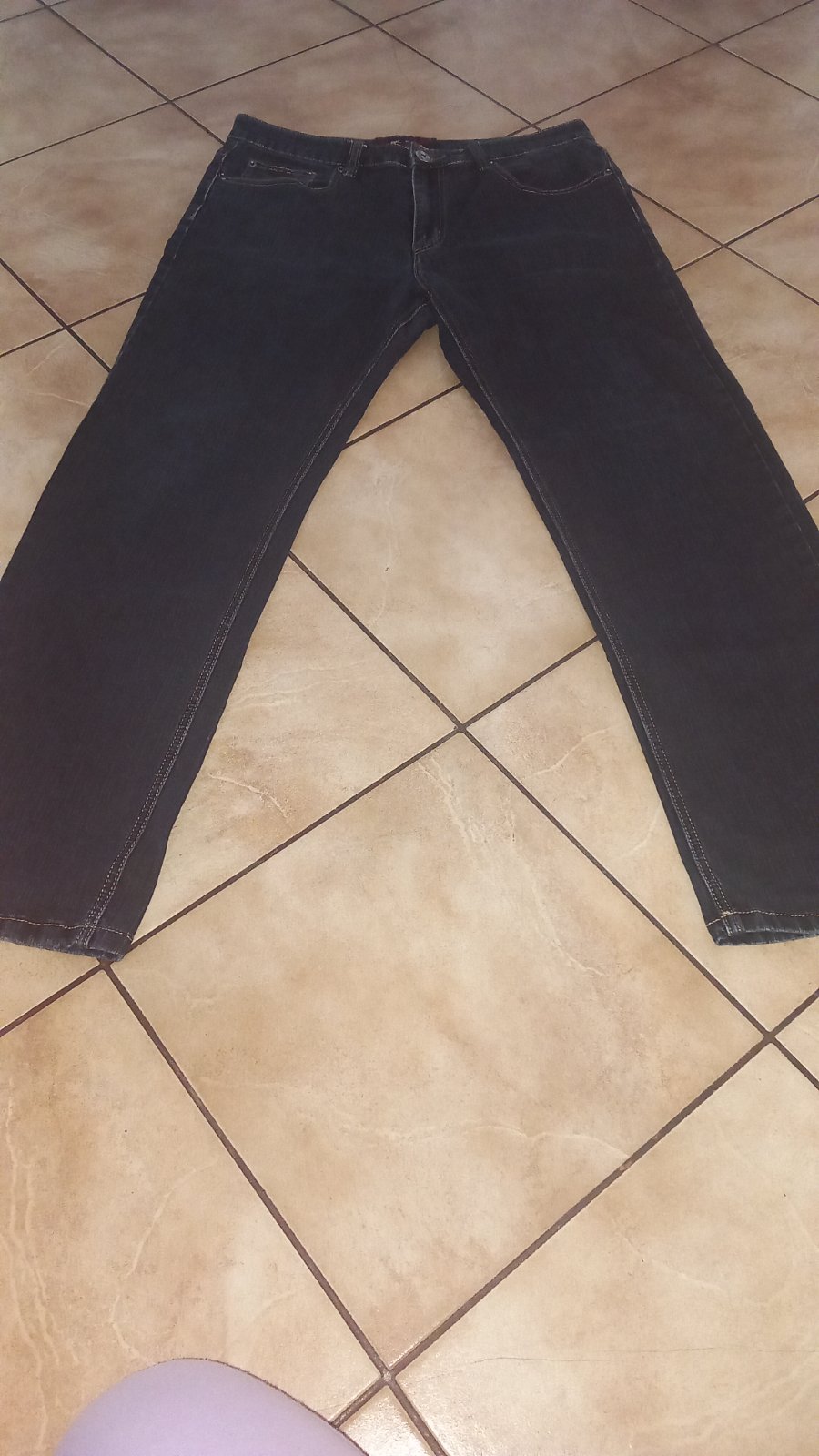 Predám parkrát oblečené rifle. Pekný stav. Veľkosť písana 36, ale manžel nosí L. V prípade záujmu ich premeriam.