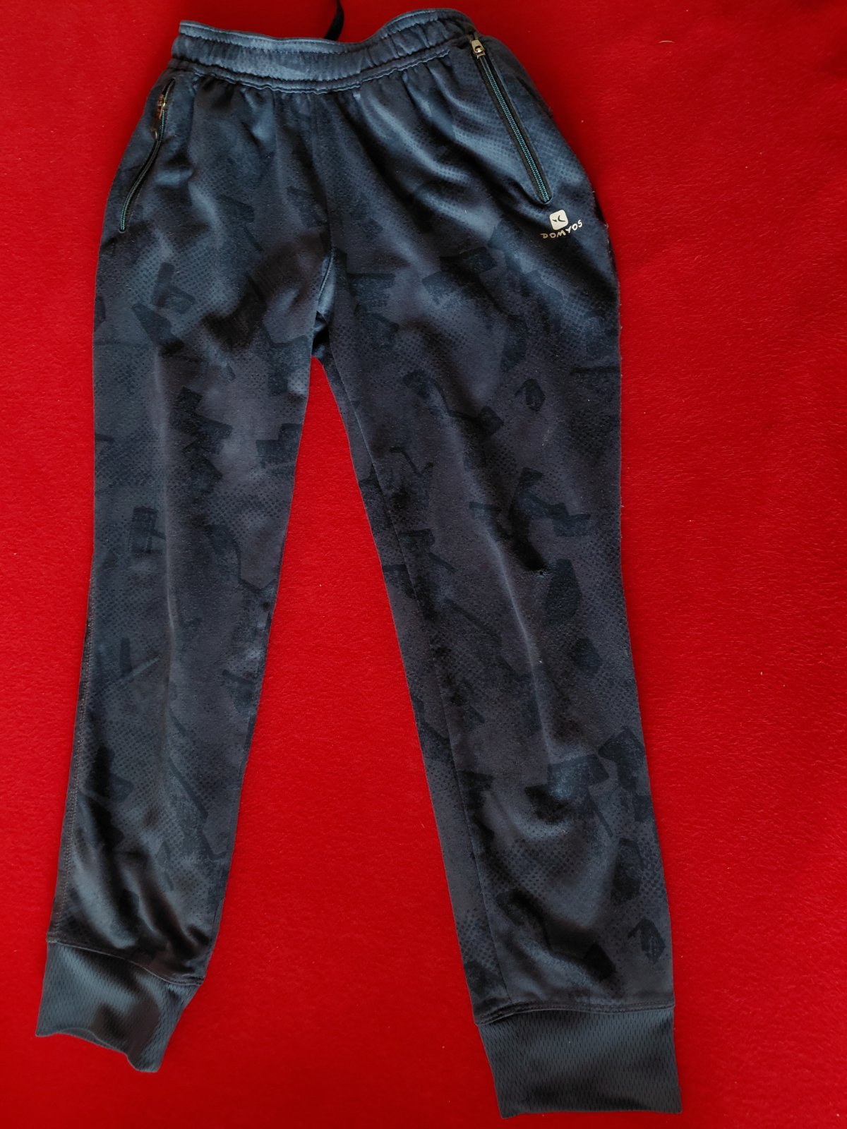 Predam teplaky v dobrom stave, len na jednom kolienku je malinka dierka.Vid foto. Teplaky su hore na gunicku aj na šnurku.Maju 2 funkcne vrecka na zips.Teplaky su tmavomodre, ako na obr.3.