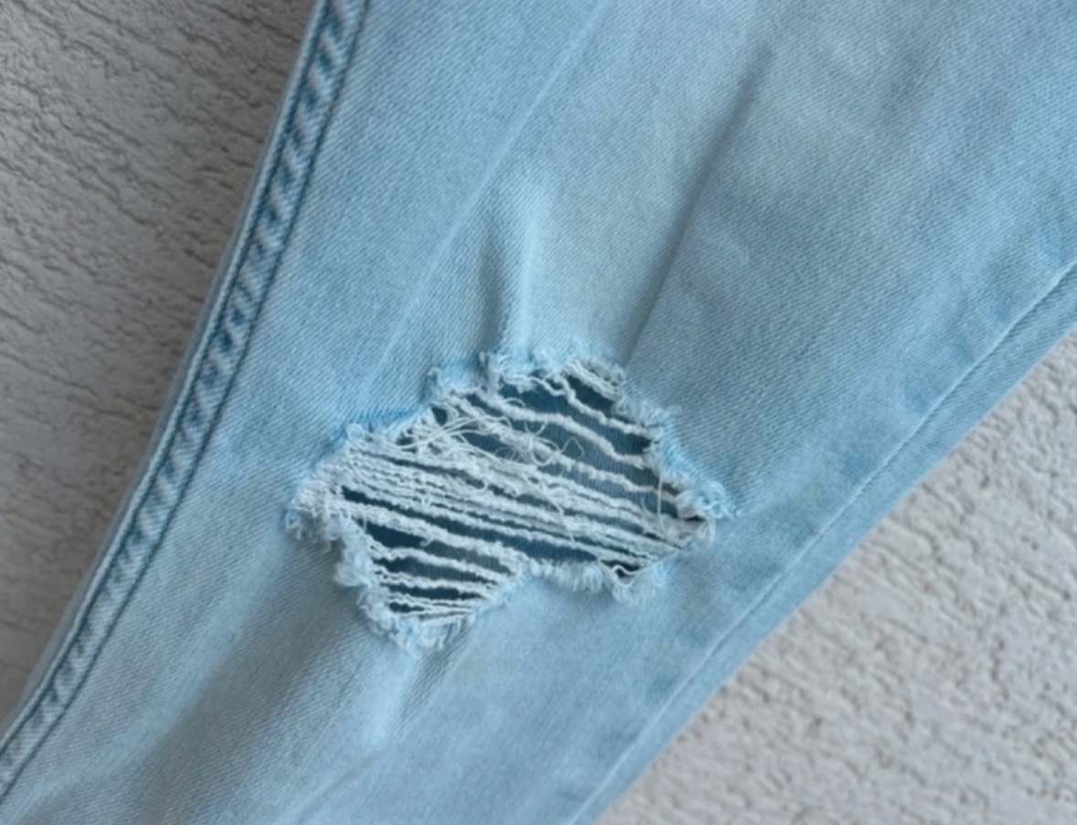 Ešte nové rifle s visackou, len odskúšané. Je to taky širší boyfriend strih, dĺžka 7/8. Pevnejšia riflovina, nie sú elastické. Pas 40 cm, dĺžka 97 cm.
