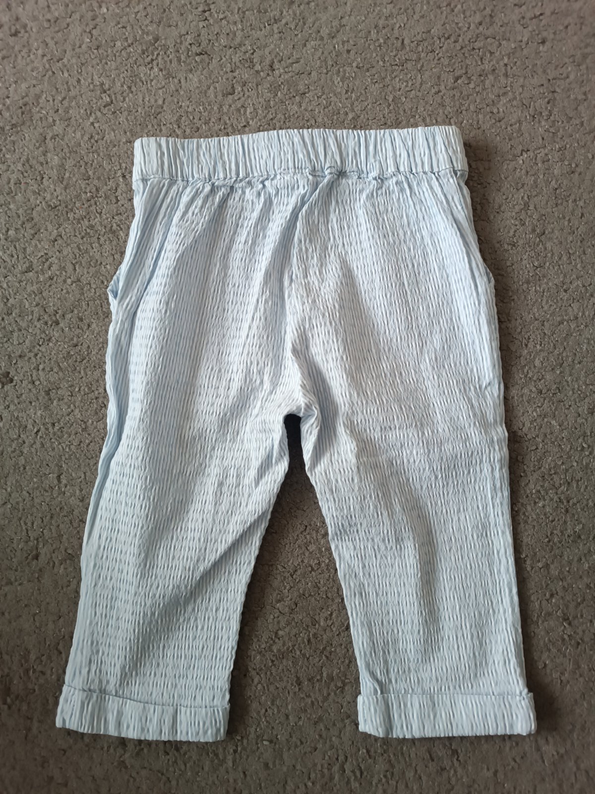 Predám elegantné nohavice v krásnej bledomodrej farbe. Oblečené asi raz, mne sú malé. Materiál je 80% polyester, 18% viskóza, 2% elastan. Veľkosť XS, značka H&M. Predávam ich aj v ružovej farbe (vi...