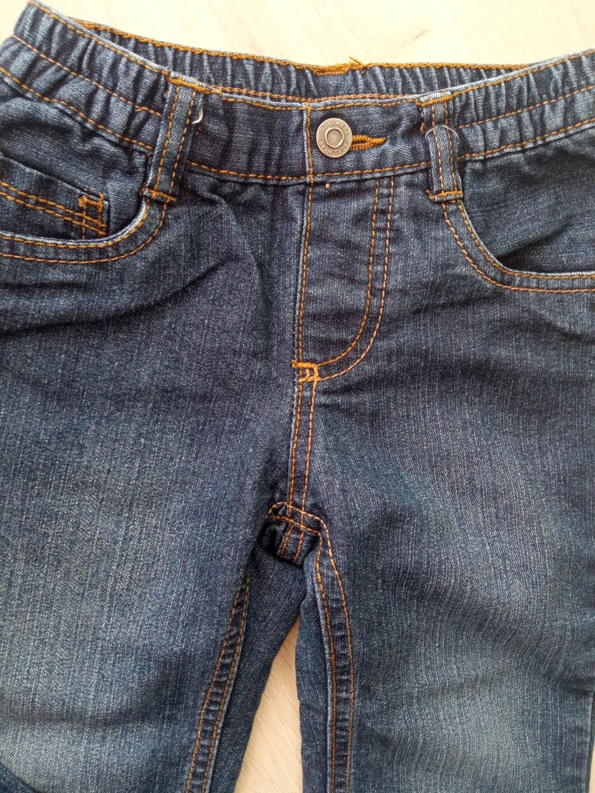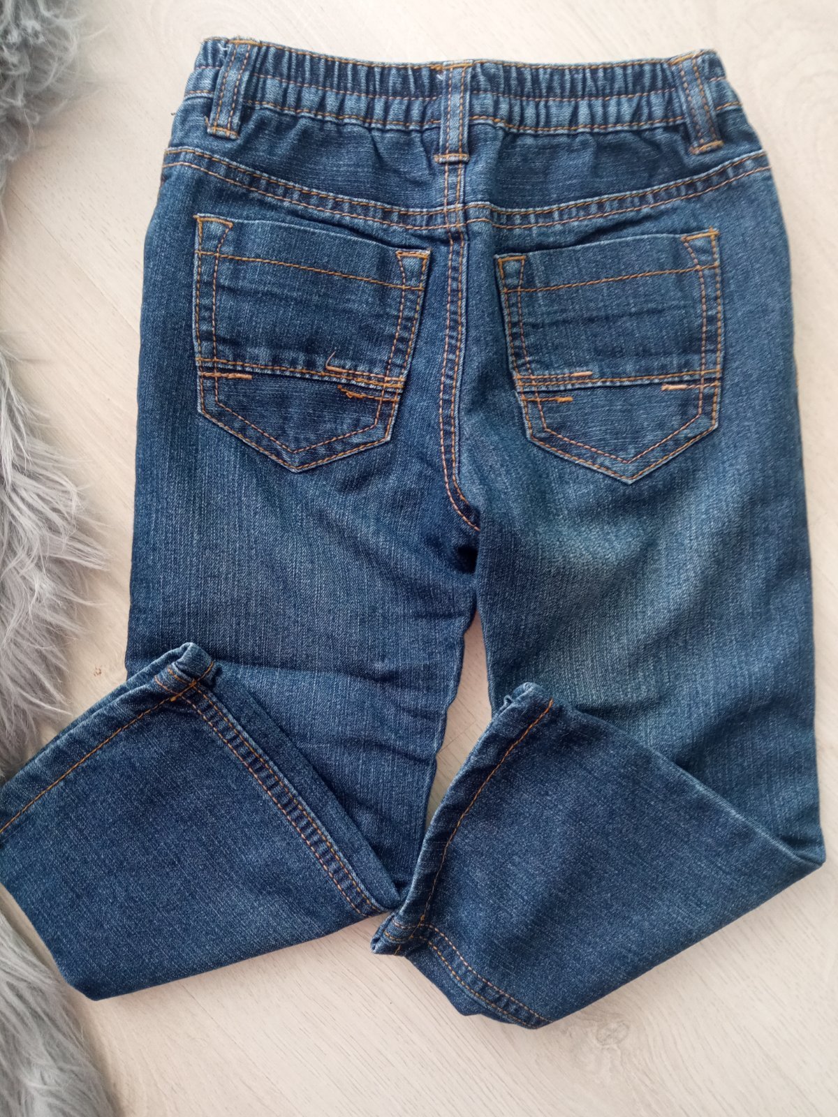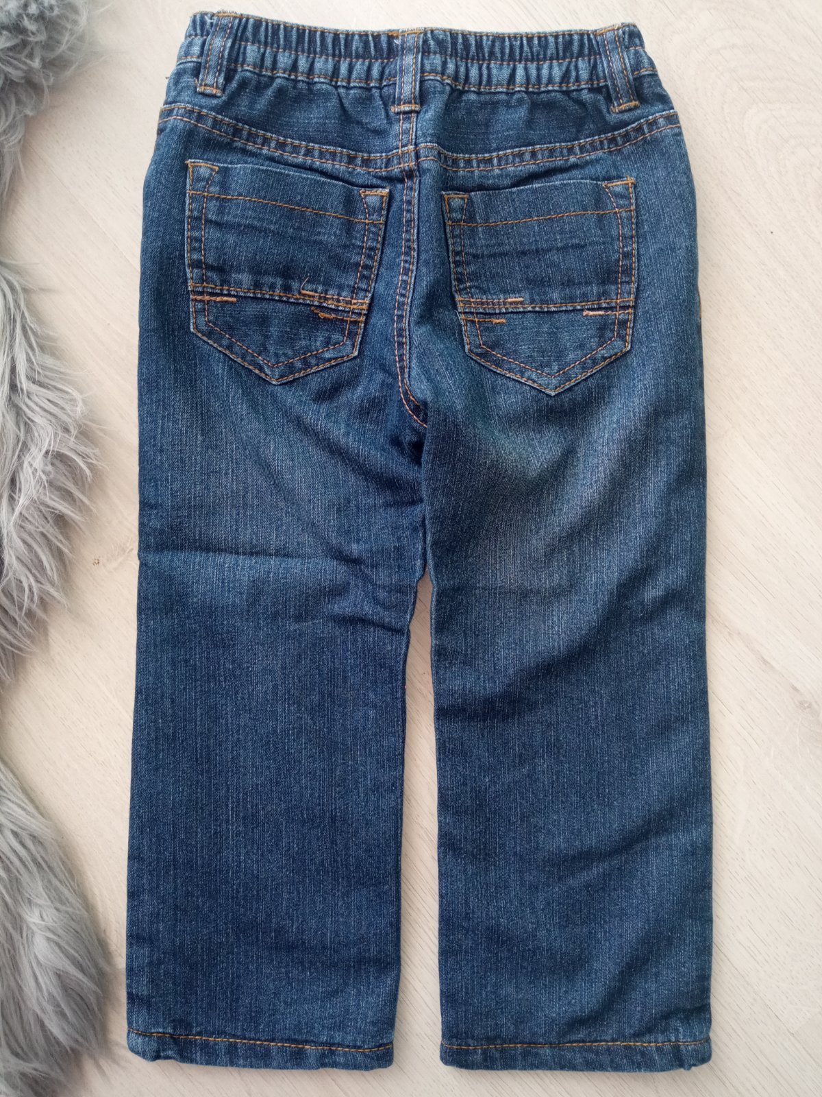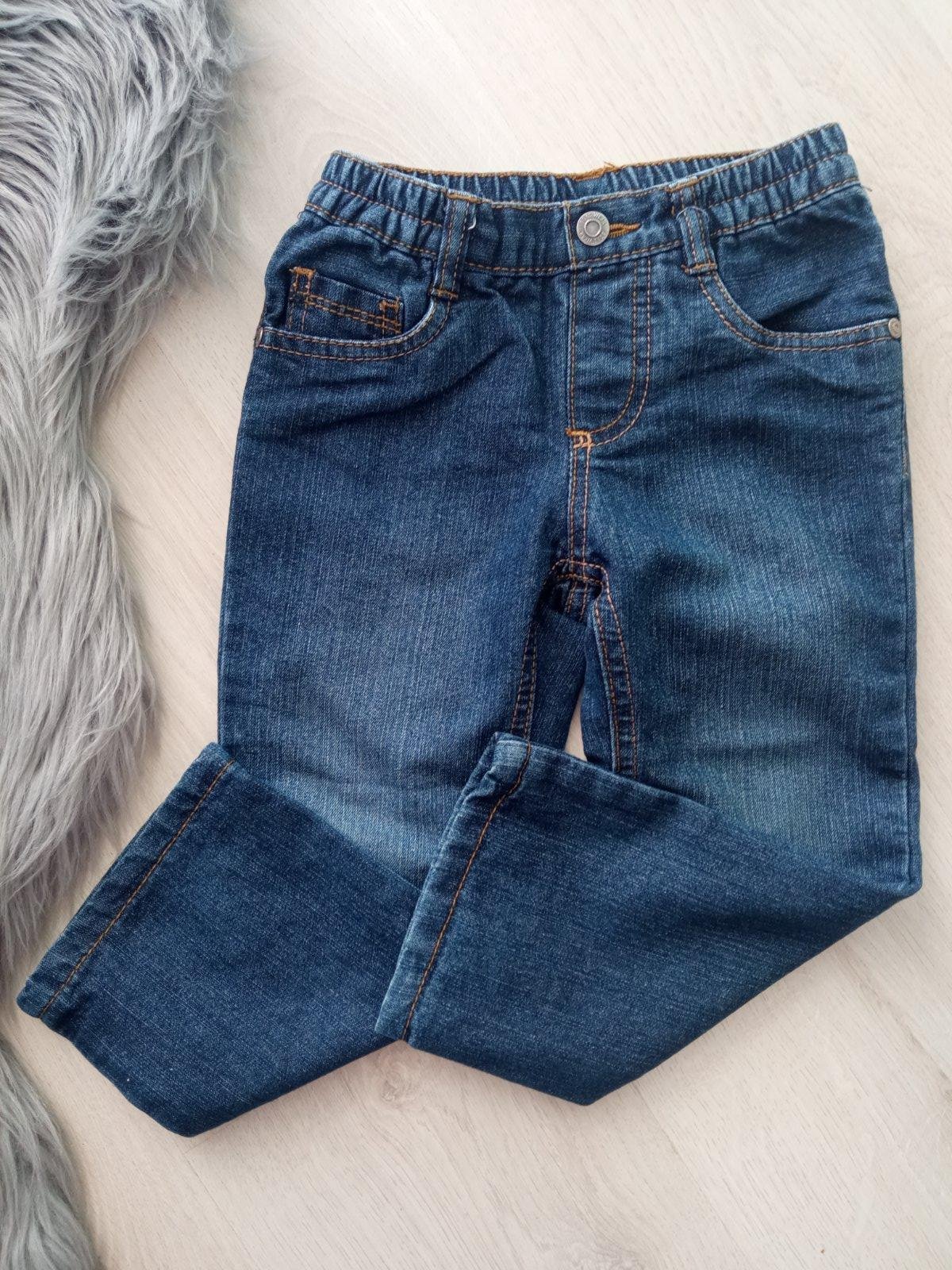 Chlapčenské jemne zateplené rifľové nohavice. Dve zadné a dve bočné vrecká. Pás na gumu.