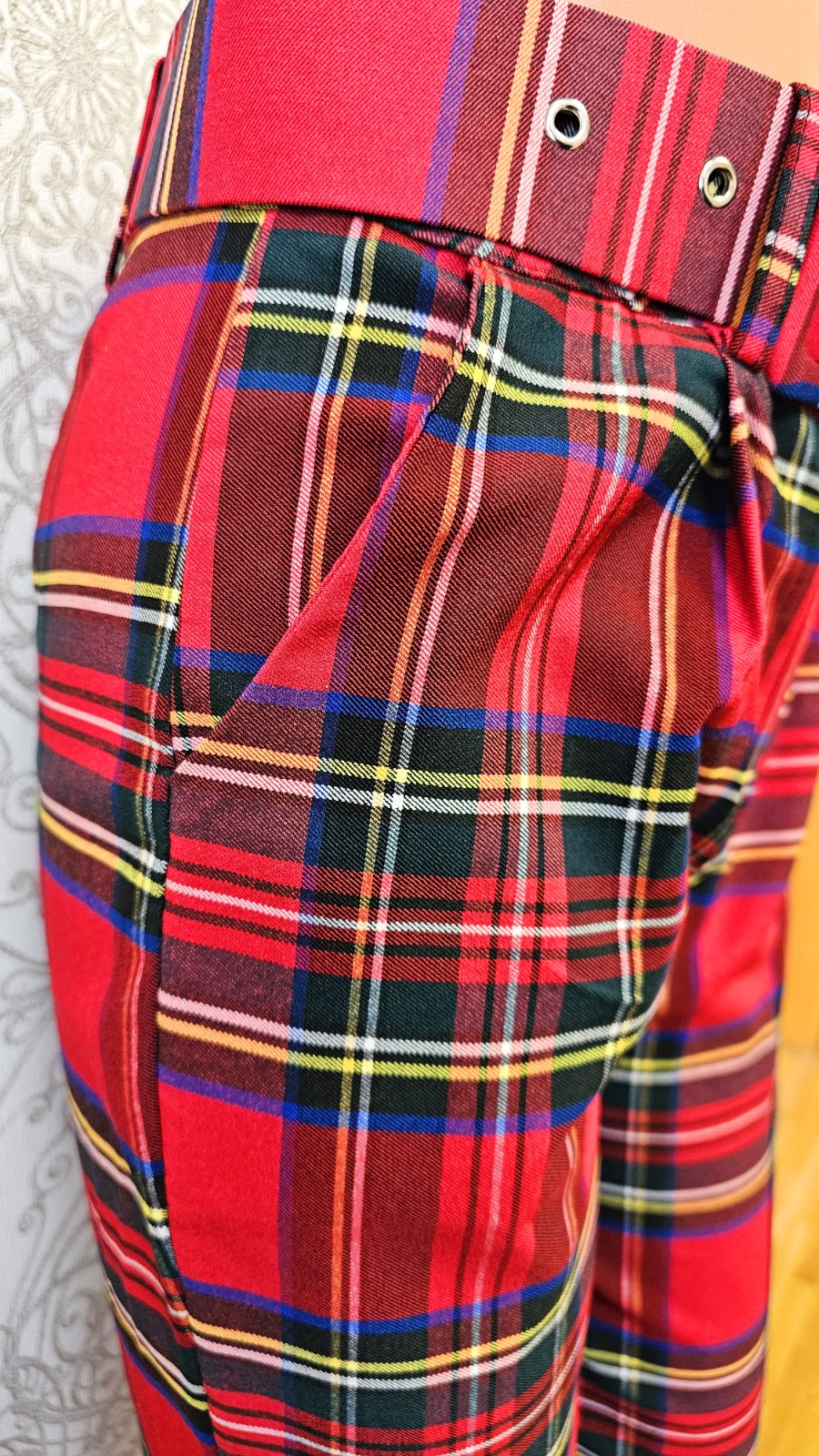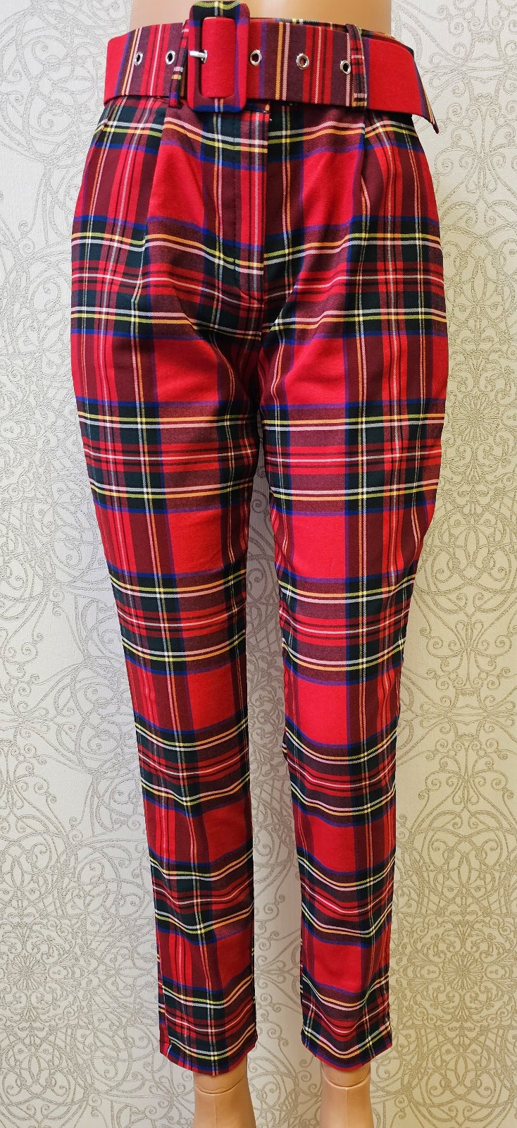 Nohavice karované s opaskom