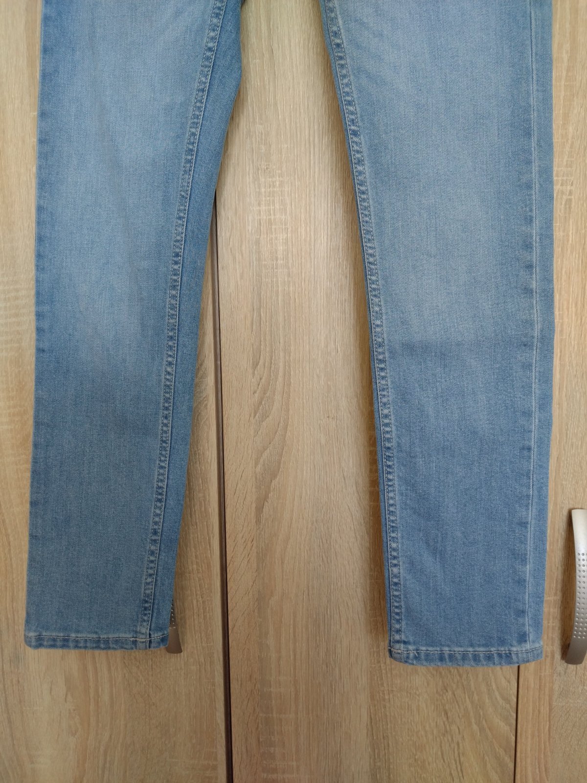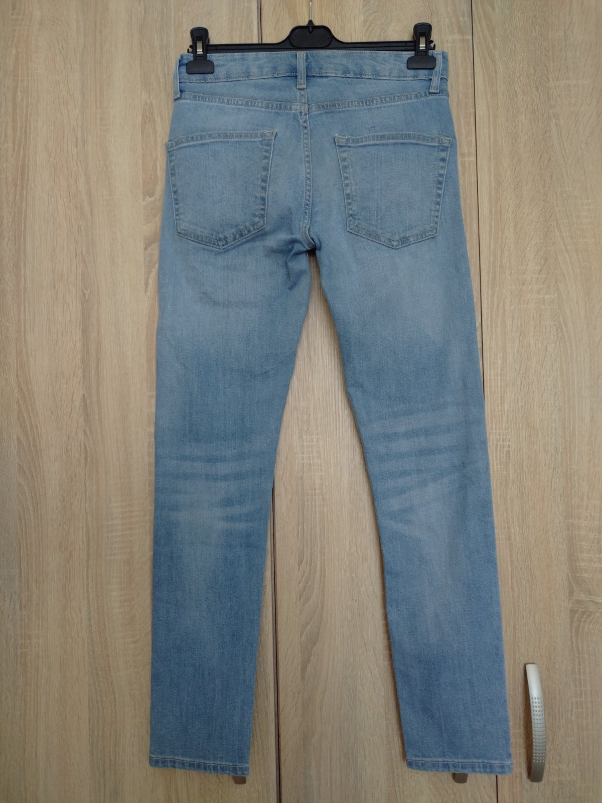 Bledomodré skinny, značka Topman, zapínanie na gombíky, funkčné vrecká, veľkosť S/M, sú elastické, len oprané.