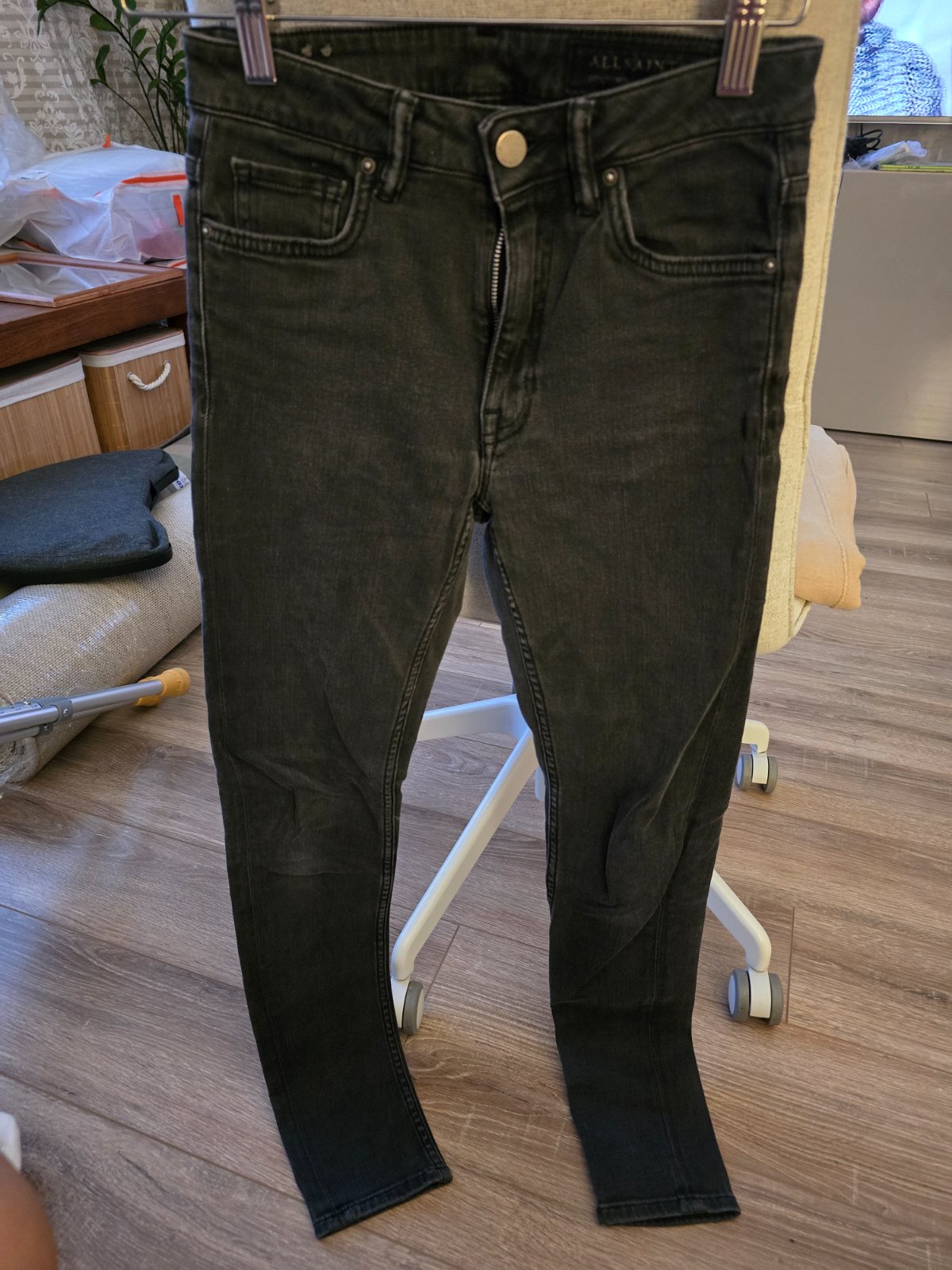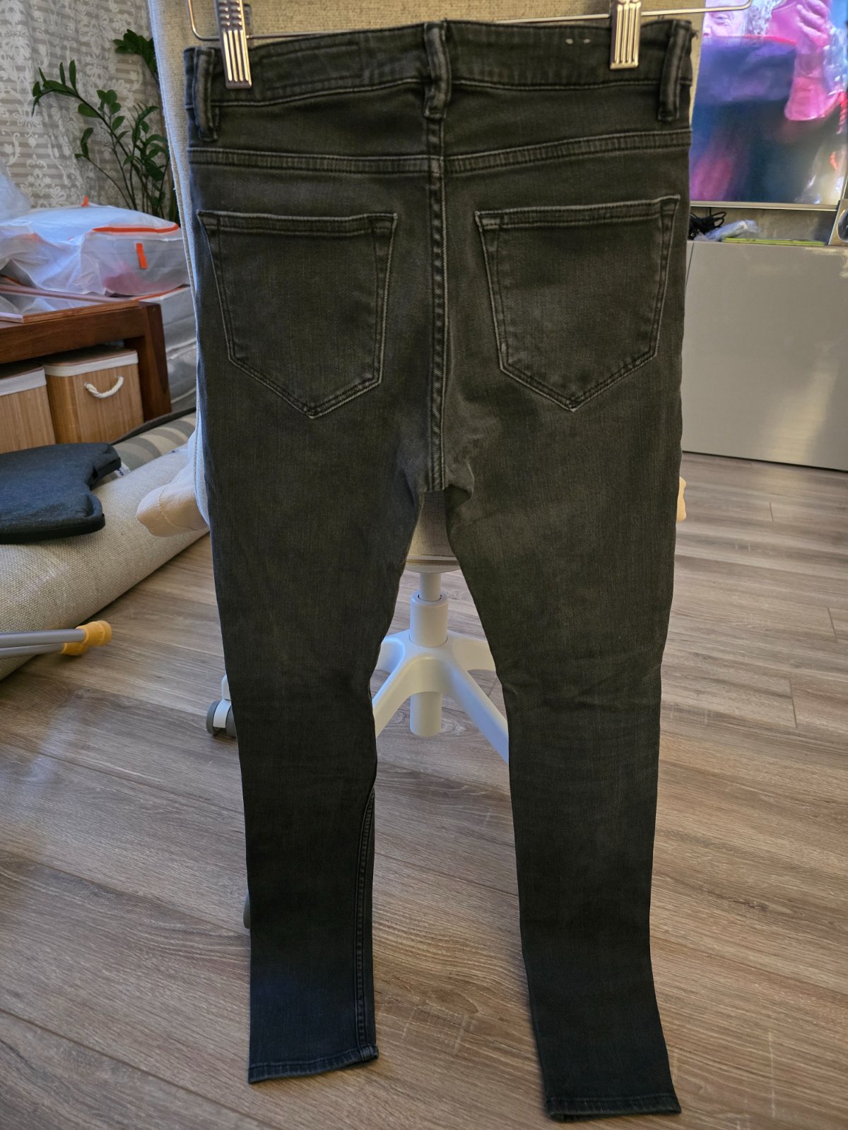 Denim slim čierne rifle W32/L32. Vzadu je taký švík. Dlžka 108 cm, pás 2 x 44 cm.