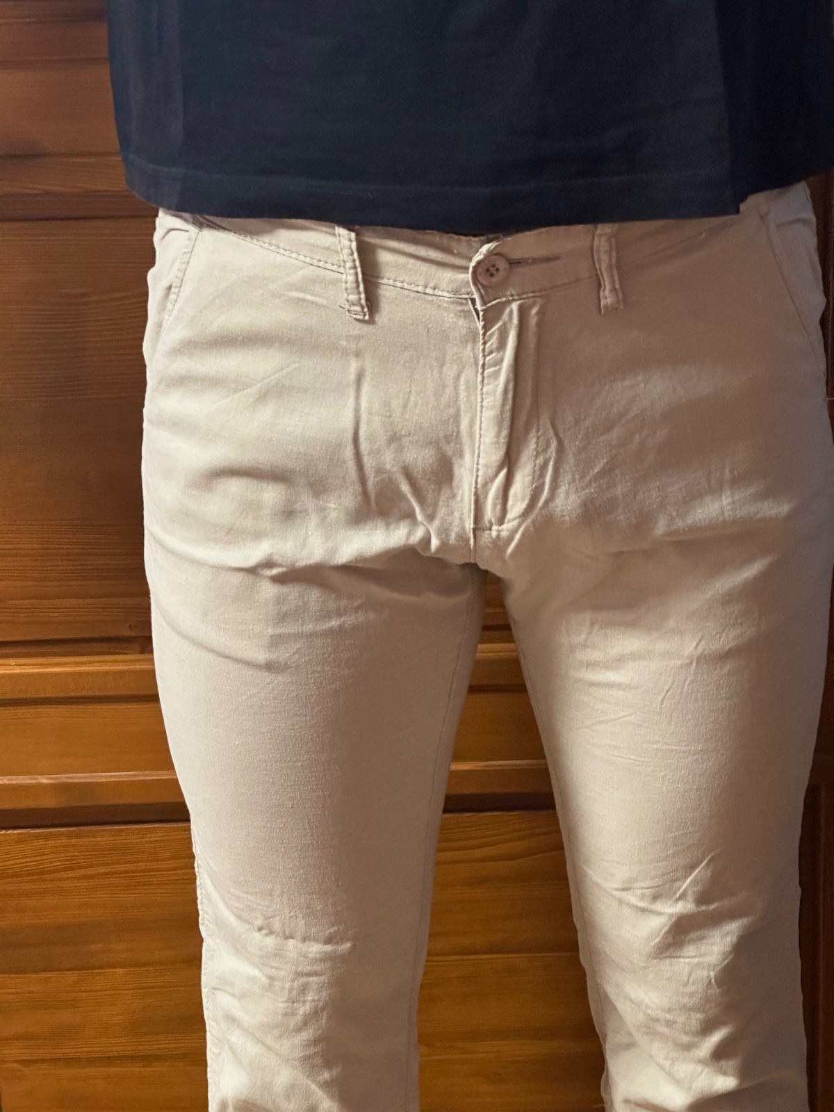 Elegantné pánske slušné nohavice v svetlej farbe, ideálne na formálne aj neformálne príležitosti. Príjemný materiál z 95 % bavlny zabezpečí pohodlie počas celého dňa. Nohavice sú v dobrom stave, bez poškodení. Veľkosť 33, čo zodpovedá veľkosti L.