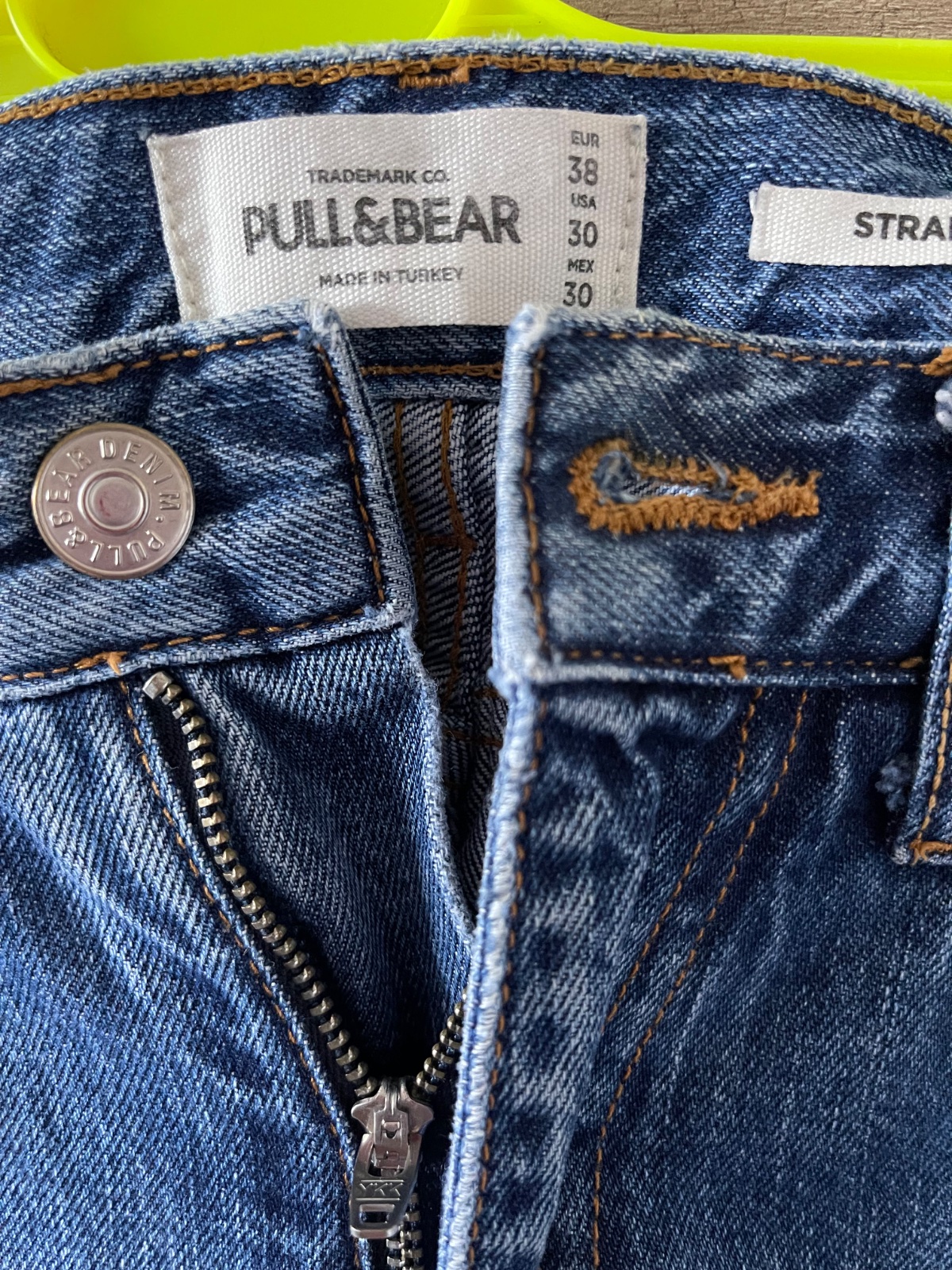 perfektne elasticke tmavo modre rifle rovneho strihu . rifle maju vysoky primes elastanu a su velmi pohodlne. su uplne nenosene. velkost 38-28 riflova velkost. pas 38-45cm x 2 boky 42-5cm x 2