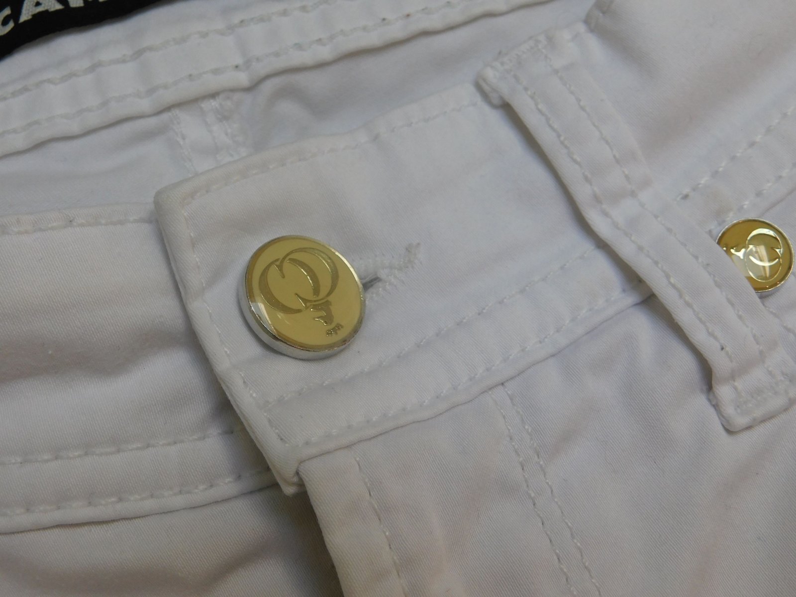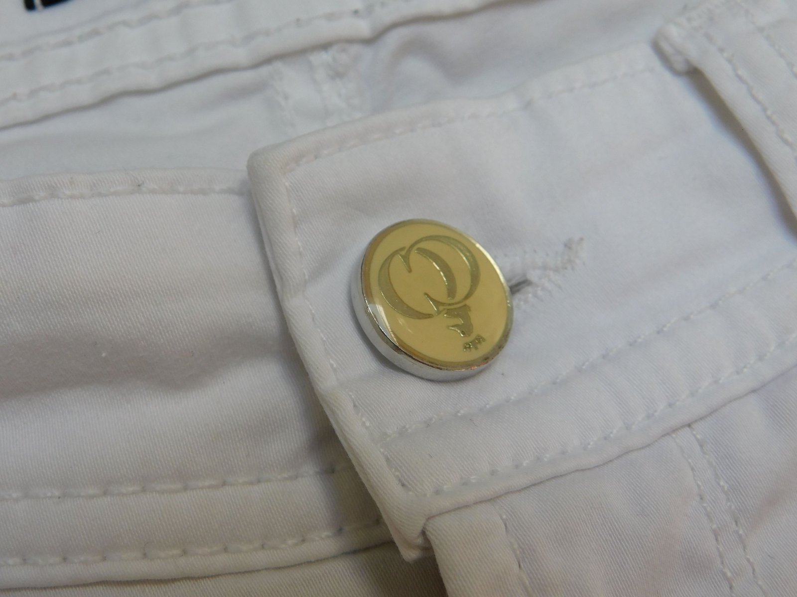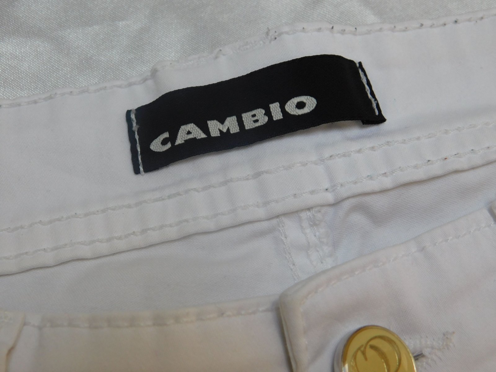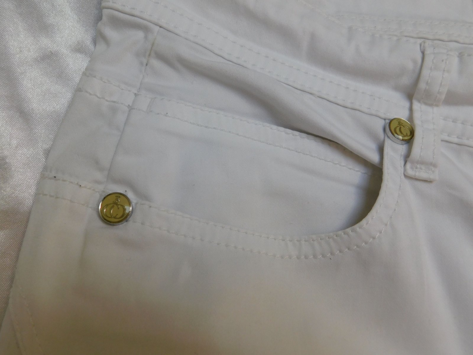 Luxusne damske rifle,bielej farby,dole po bokoch zips.dole slaboviditelny flačik/nevidno/,inak super stav ako nove. 97%cotton,3%elastan. se26