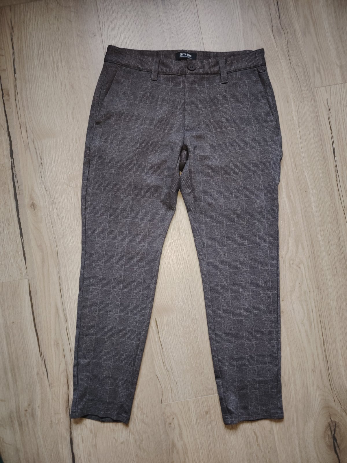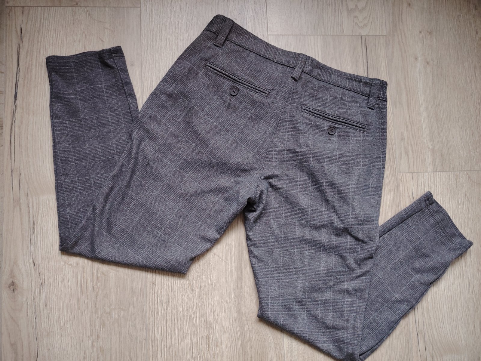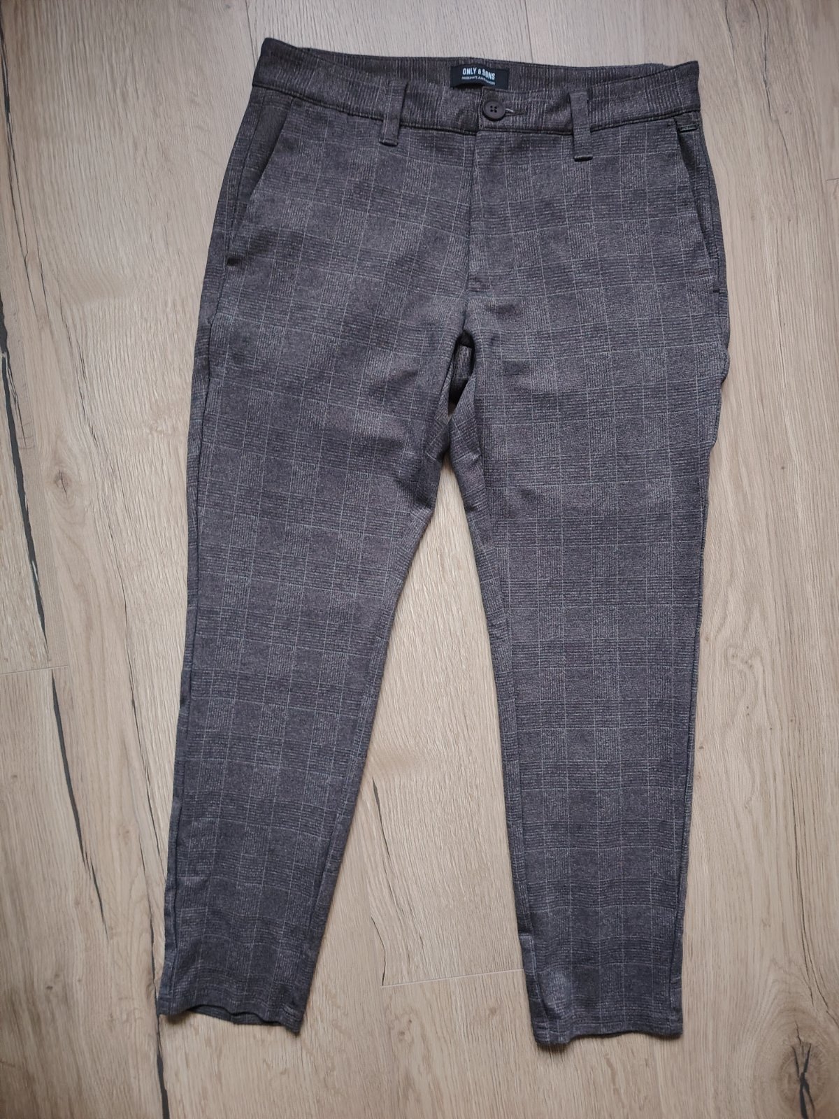 Športovo elegantné, slim nohavice, vo veľmi dobrom stave, oblečené pár krát. Materiál veľmi príjemný 64%viskóza, 31%polyester, 5%elastan. Veľkosť W30 L30. Rozmery: pás 38cm, dĺžka 90cm, vnútorná dĺžka 66cm.