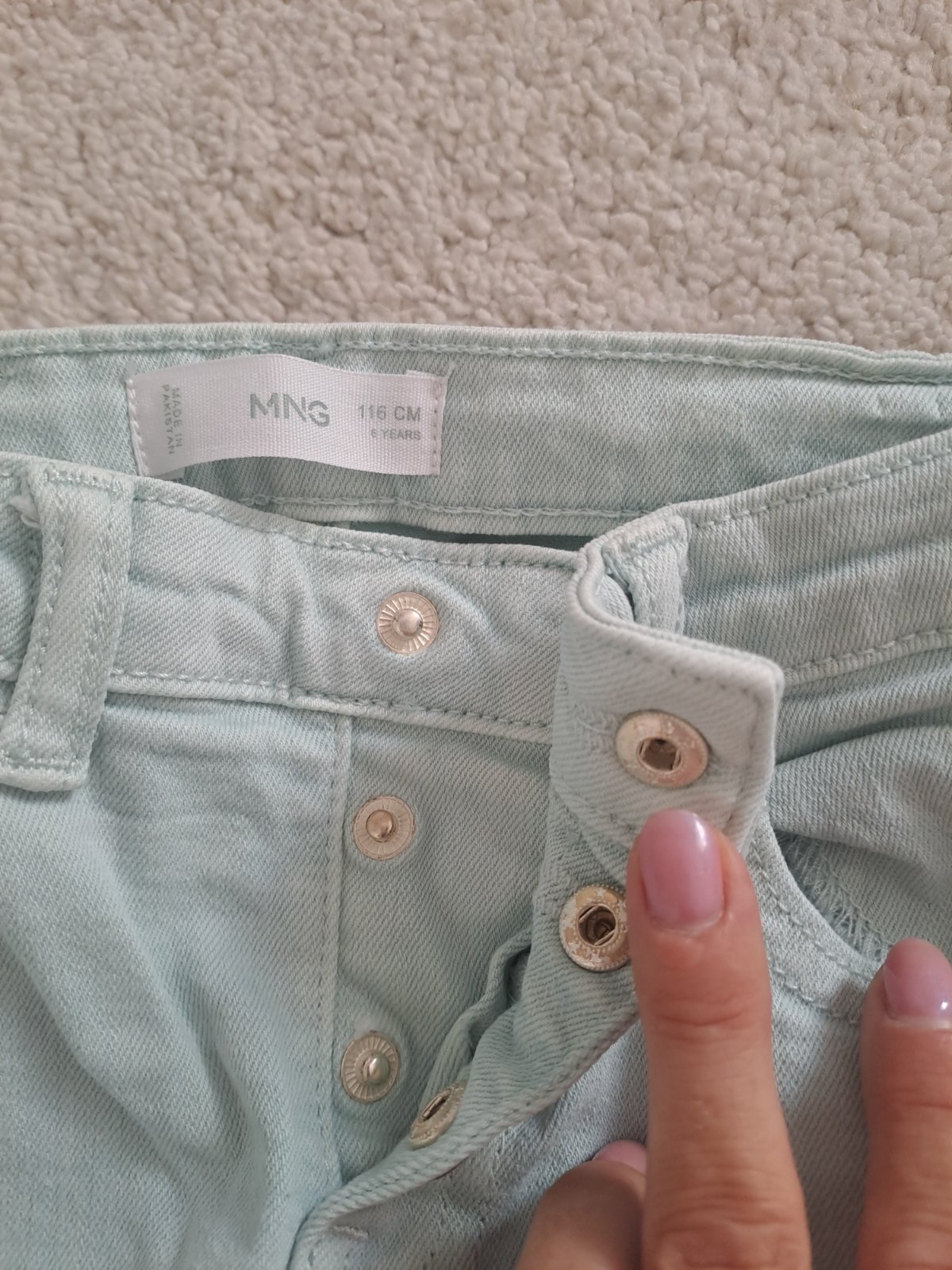 Rifle Mango v. 116, slim fit, regulácia v páse, dlzka 68cm, v peknom nosenom stave, ziadne poškodenia.