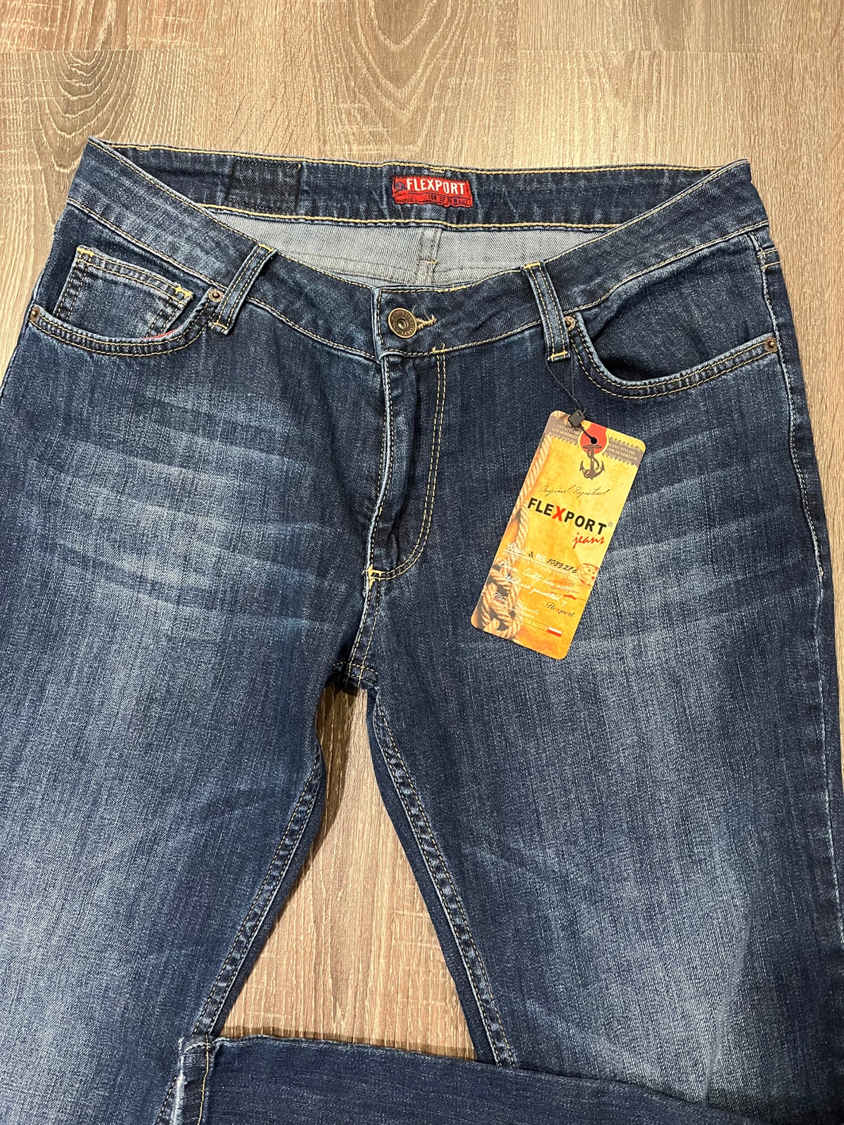 Flexport nove damske uzke rifle,pre nizsie postavy,velkost W38 cca XL,tmavomodra farba,komplet s etiketou,vhodne ako darcek,PC 50 eur,material 100% bavlna,dlzka je 93cm,sirka v pase je cca 44x2cm,predny sed ma 24cm a zadny ma 36cm