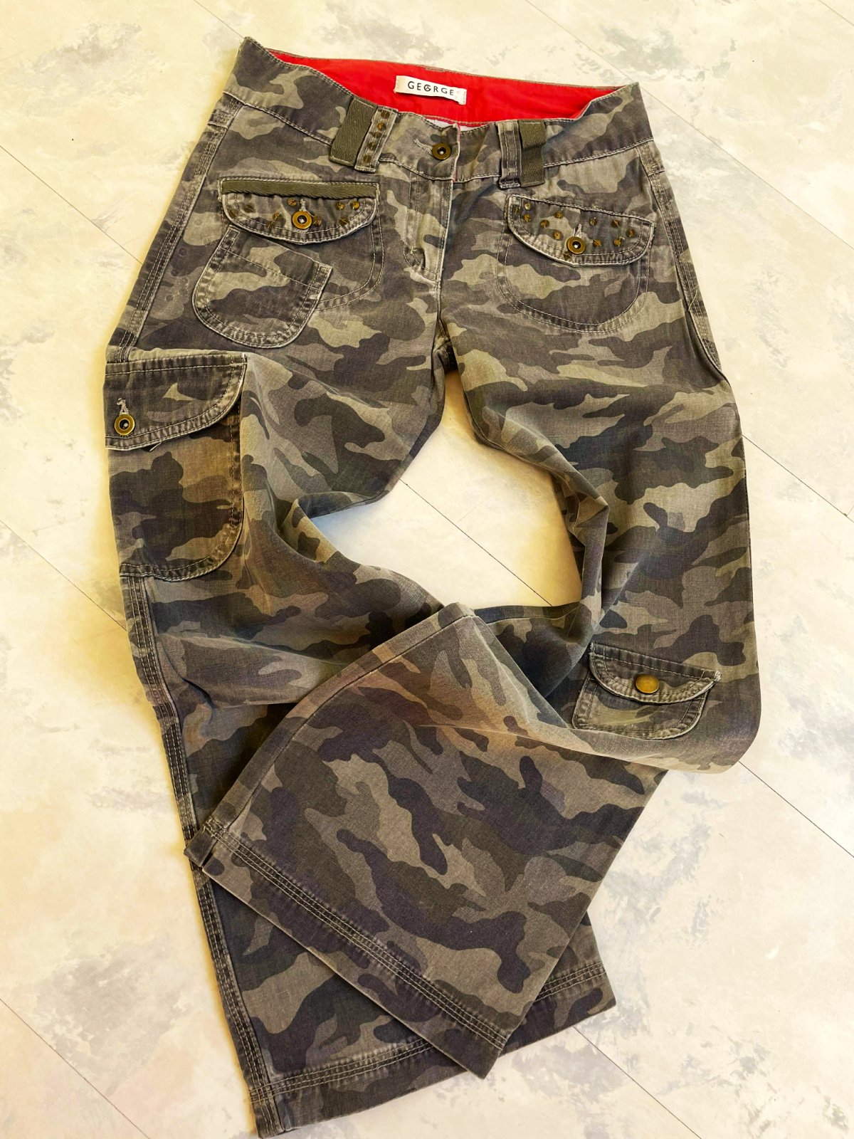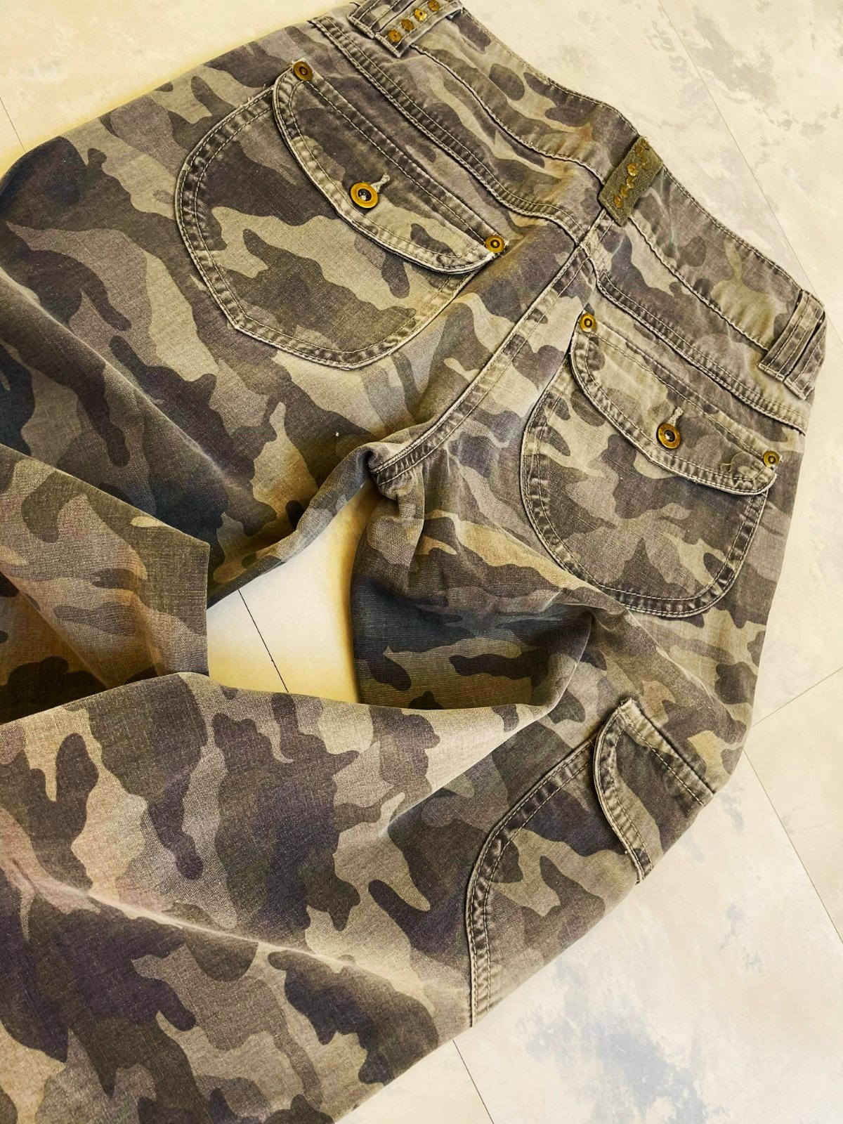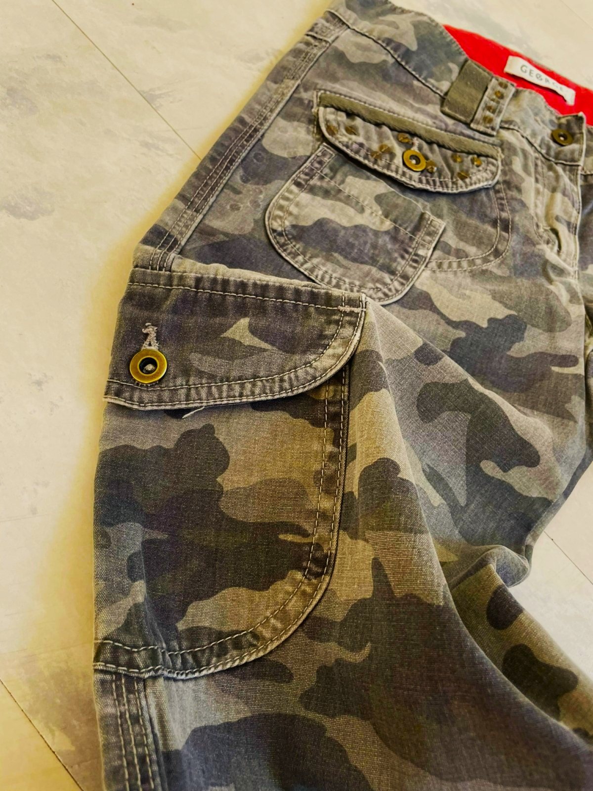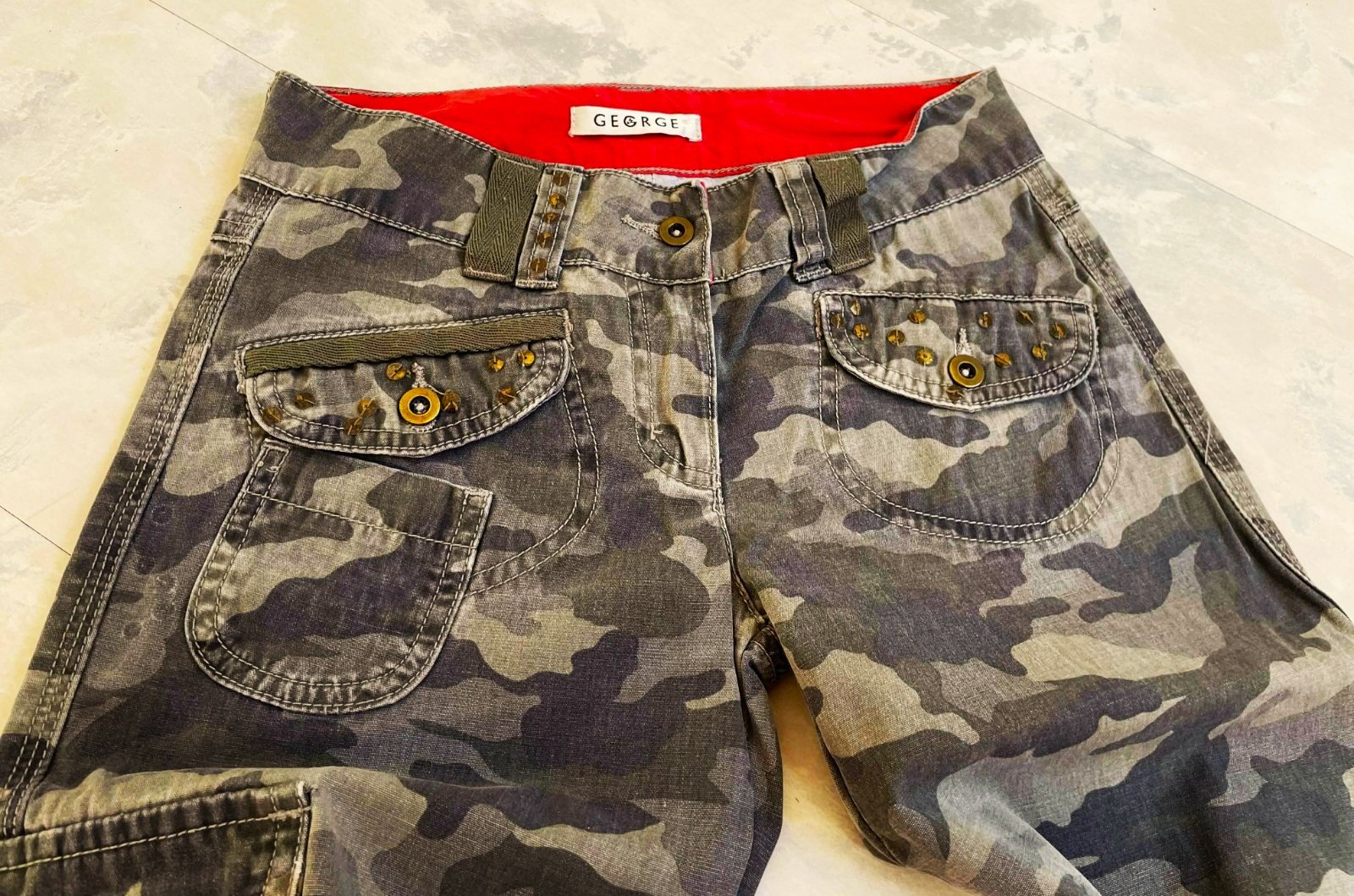 perfektne sediace maskáče, v cargo štýle (kapsáče) s výraznými detailmi, ako sú cvoky na vreckách,pútka a samotné vrecká,army look,dolu rozšírené,veľkosť vyfotená