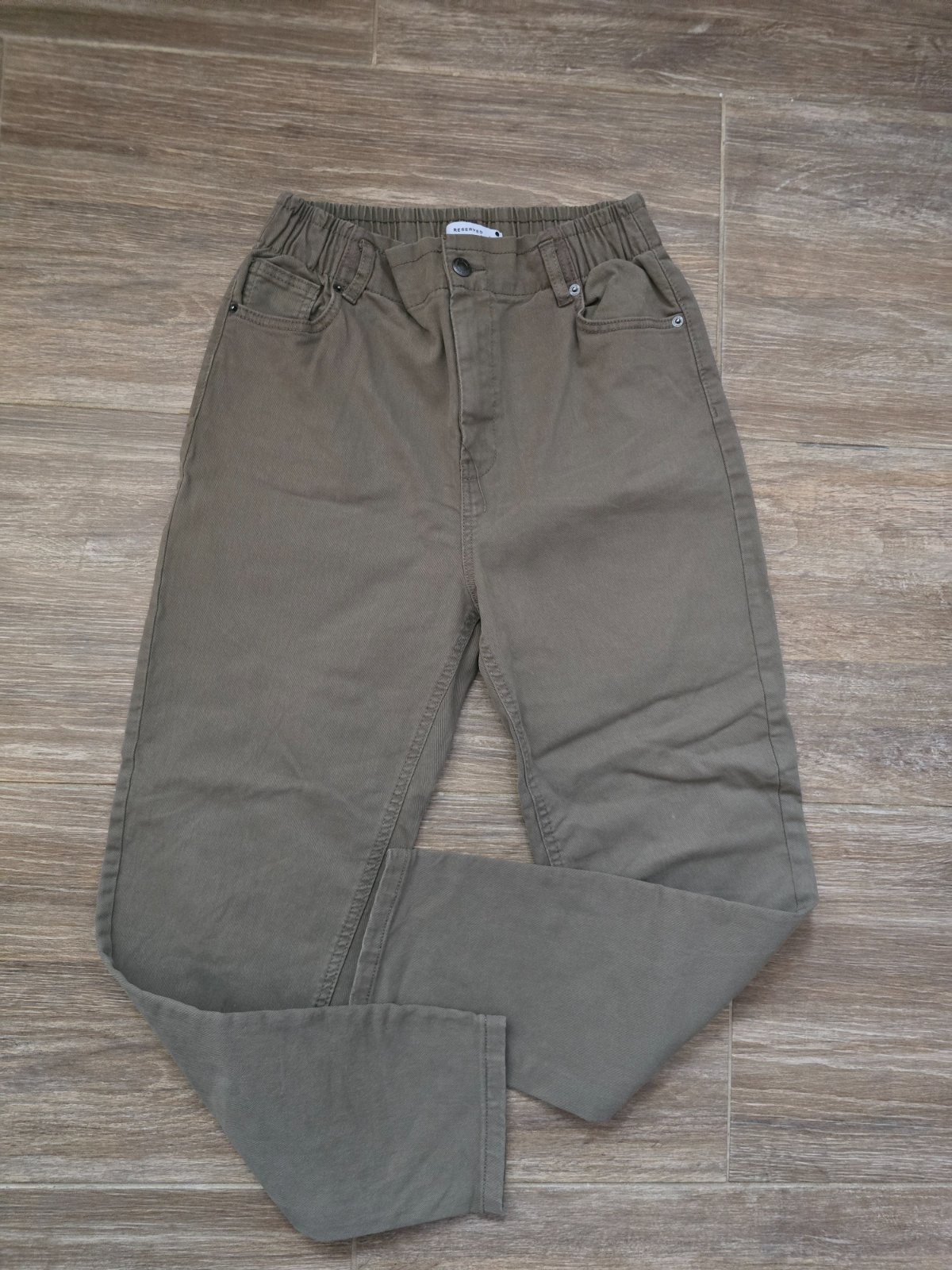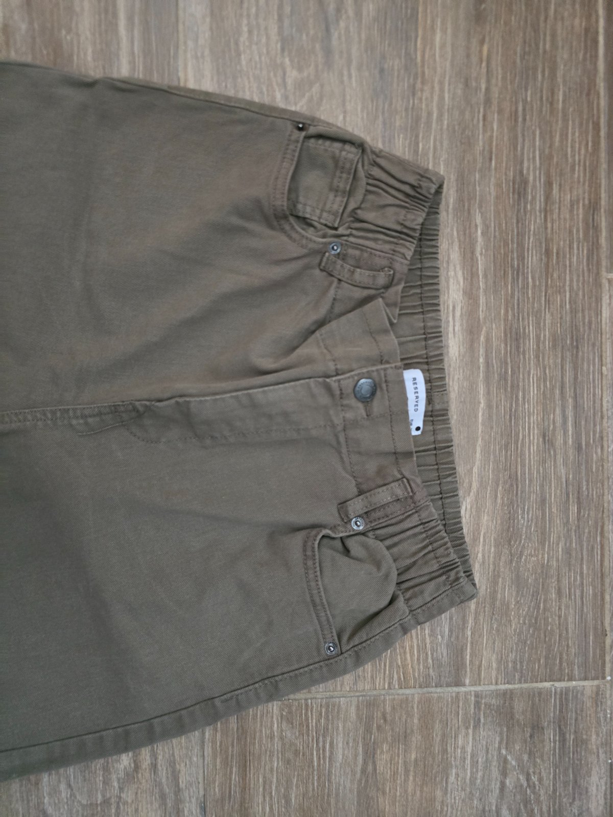 Dámske elastické nohavice Reserved. Vysoký pás. Farba olivová. Velmi dobrý stav. Nosenie jemne vidno na kolenách.