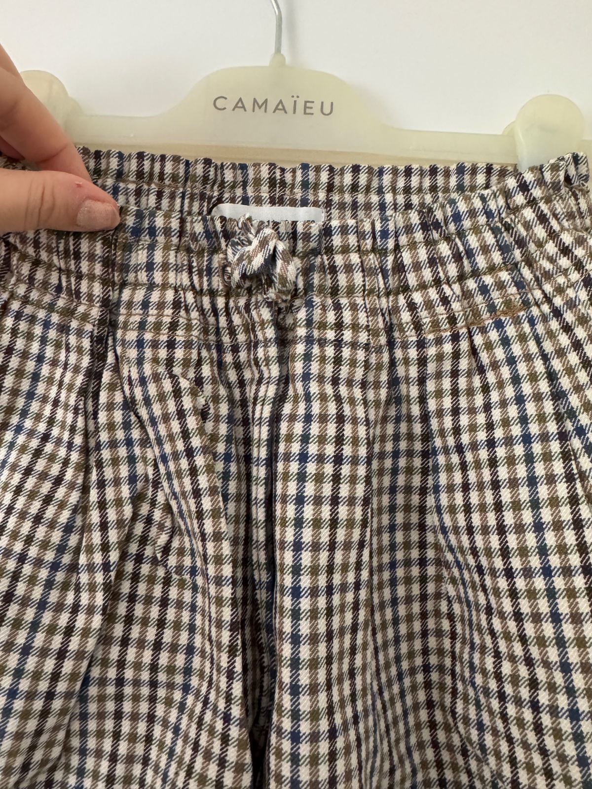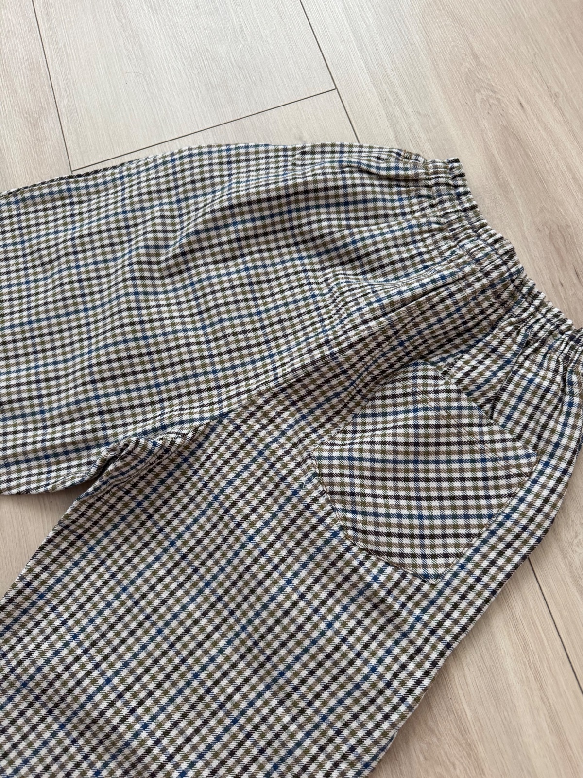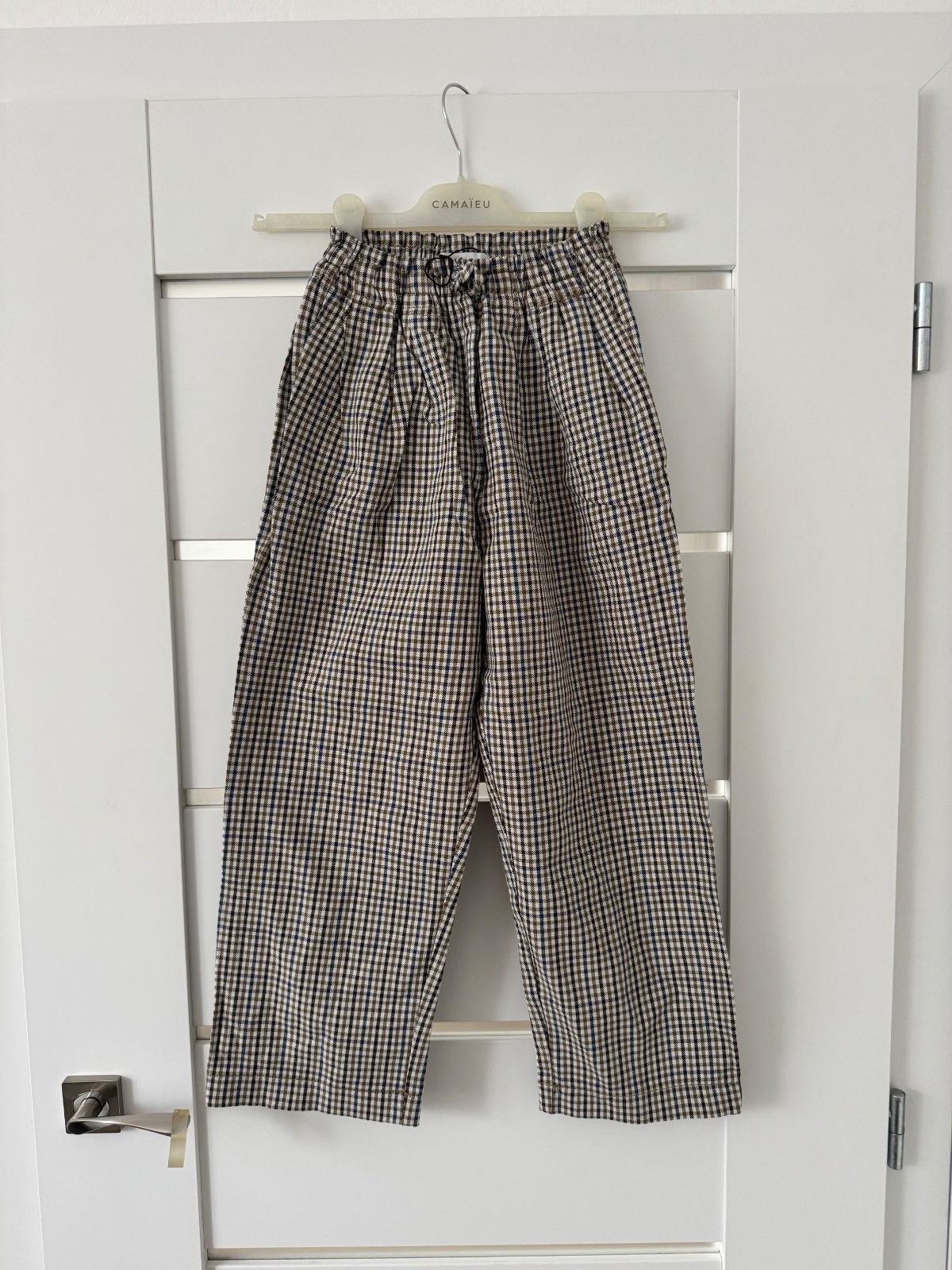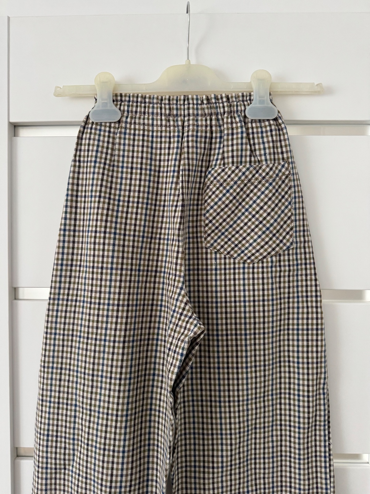 Nohavice s riasenim v pase a so vzorom kohutej stopy. Elegantne. Šedá a Modra. Oblecene raz do kina. Tip top stav. PC 23€ Dĺžka 84, pas v klude 31cm. V zadnej časti guma v pase, vrecka a zips.