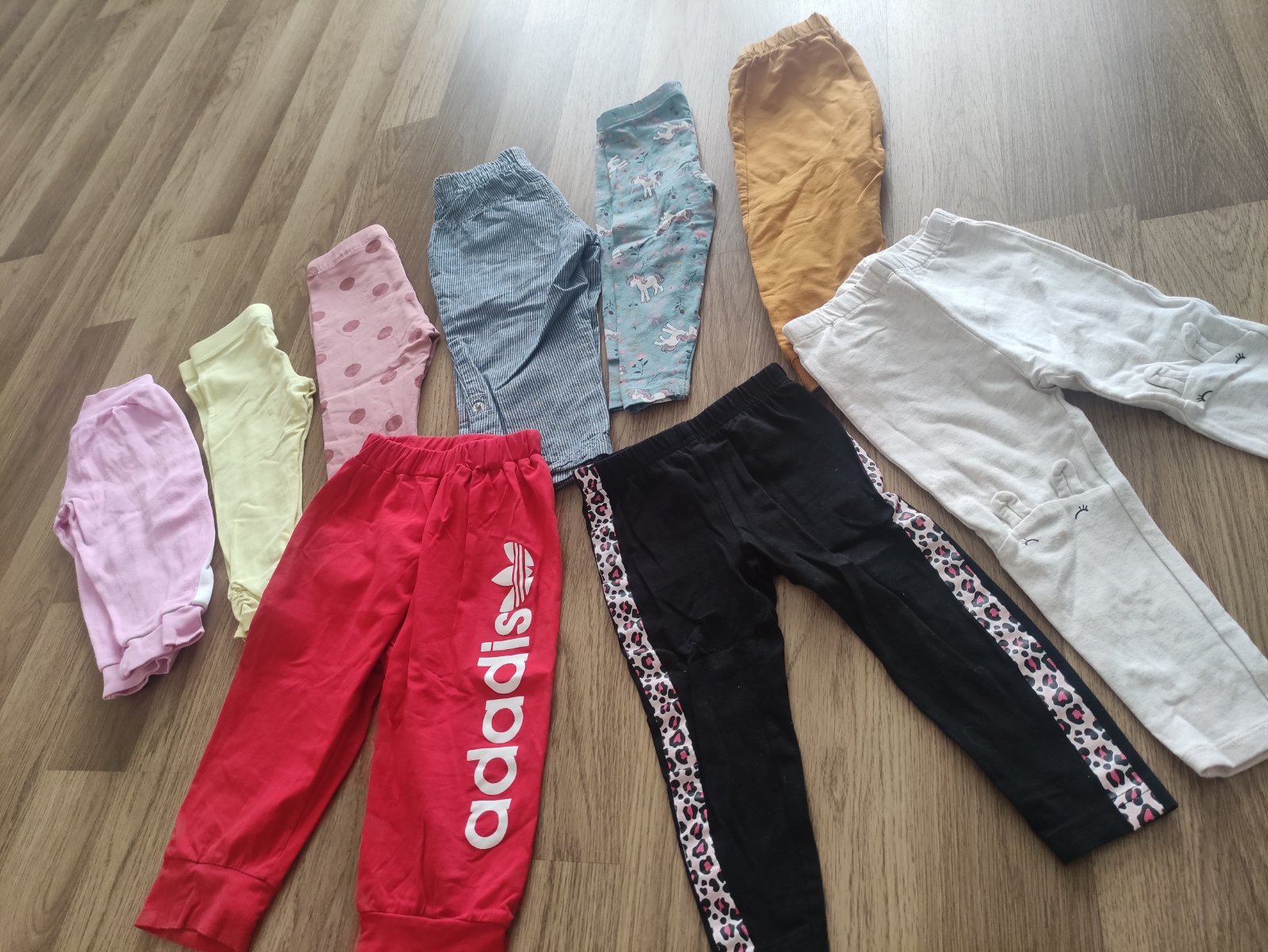 Predám balík teplákov a legín, jedny nohavice HM (daju sa vyhrnut na krátke). Rôzne značky, cena spolu 5 eur+ poštovné
