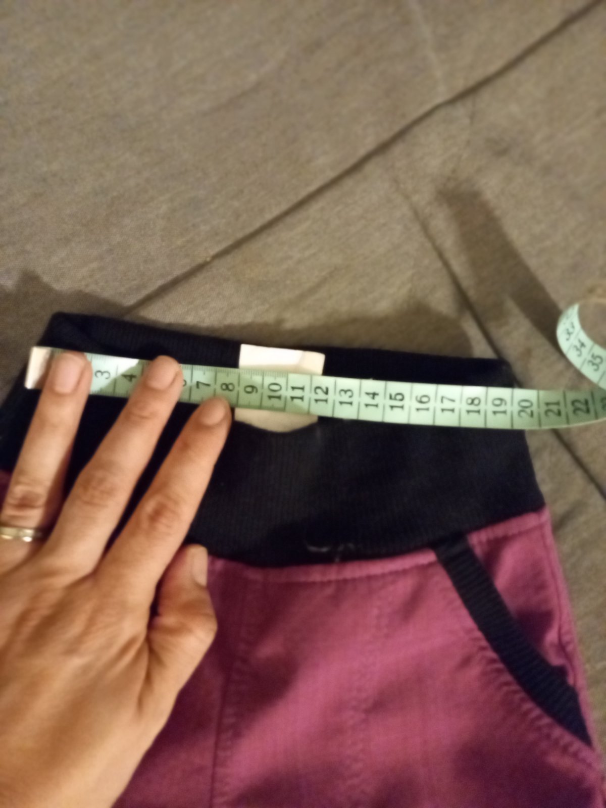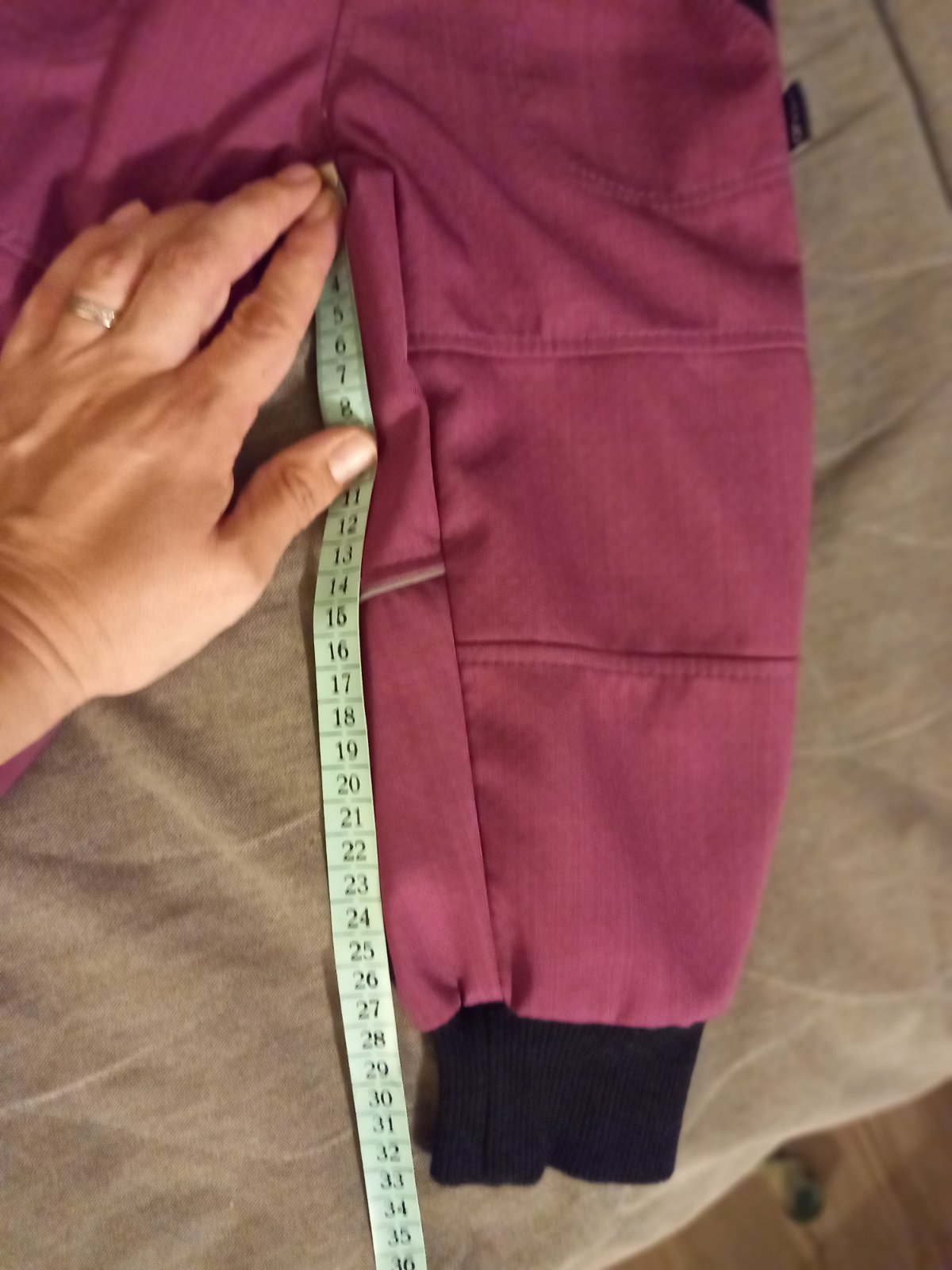Dĺžka od rozkroku 33 cm, šírka v páse 19-20 cm. Na boku vrecká, vzadu reflexné pásiky. Nezateplené. Ako nové, bez chybičky.