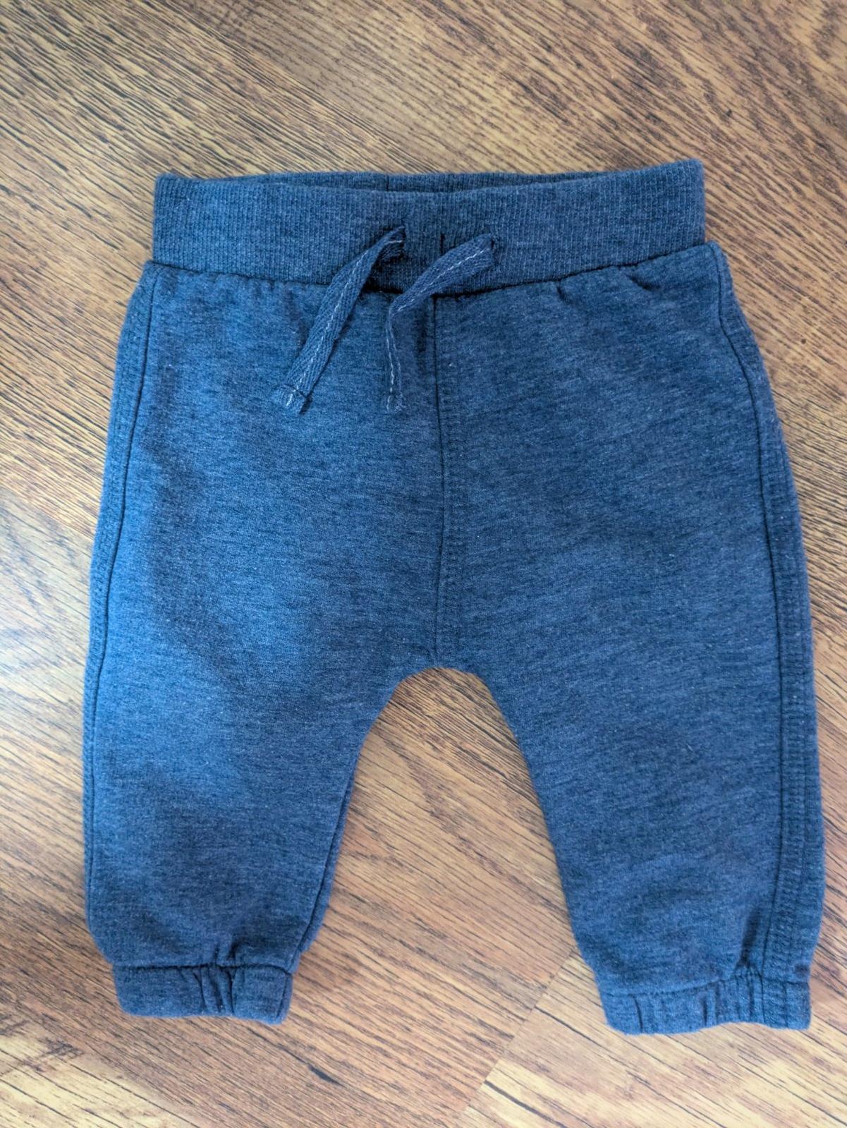 predam Kasne teplaky bez flakov a dier,velkost 62/68 100%ba,sirka v klude 2x 21cm,dlzka 33cm,farba je modro siva