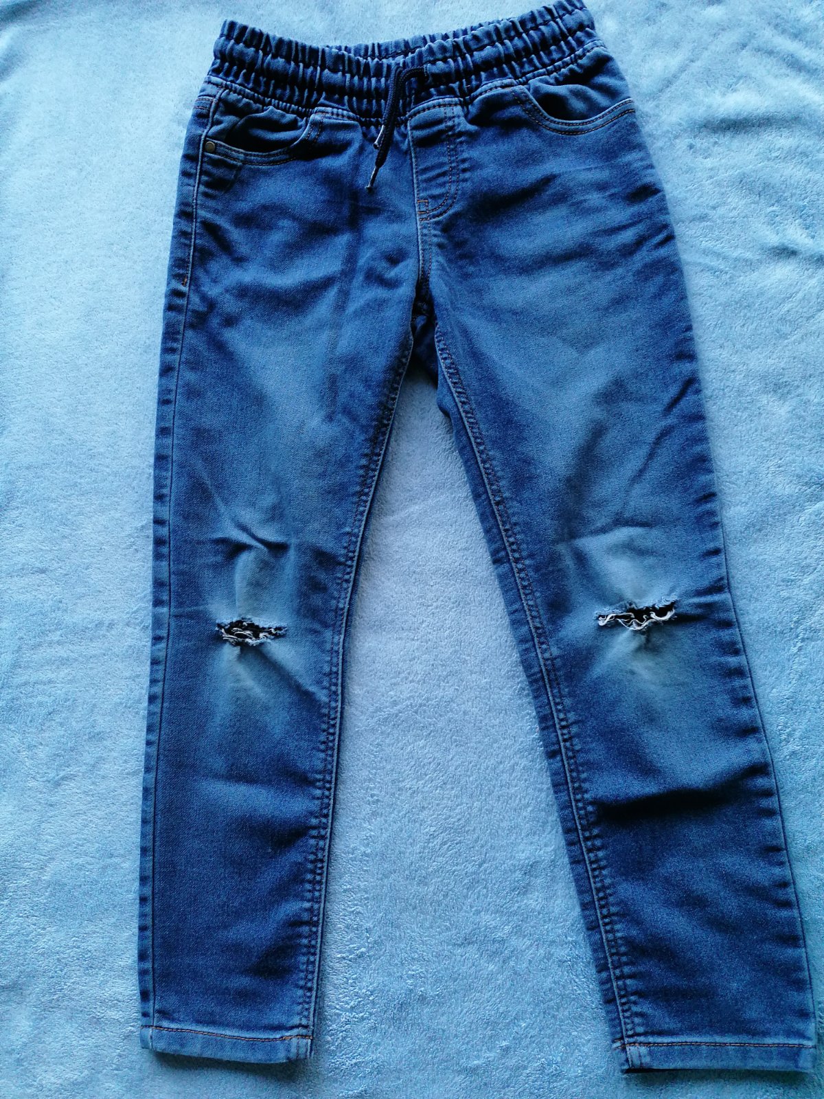 Nosenie vidno na kolenách, majú diery (no stačí dat štýlové záplaty a je to :) a mini bodky (neviem ci od nova alebo sa prihodilo malému)